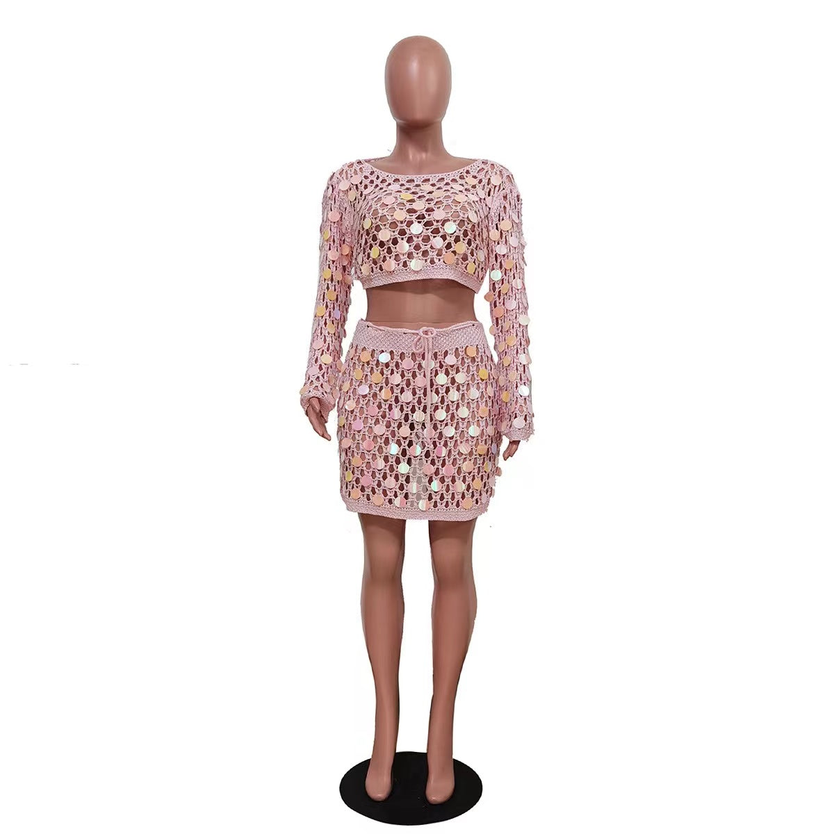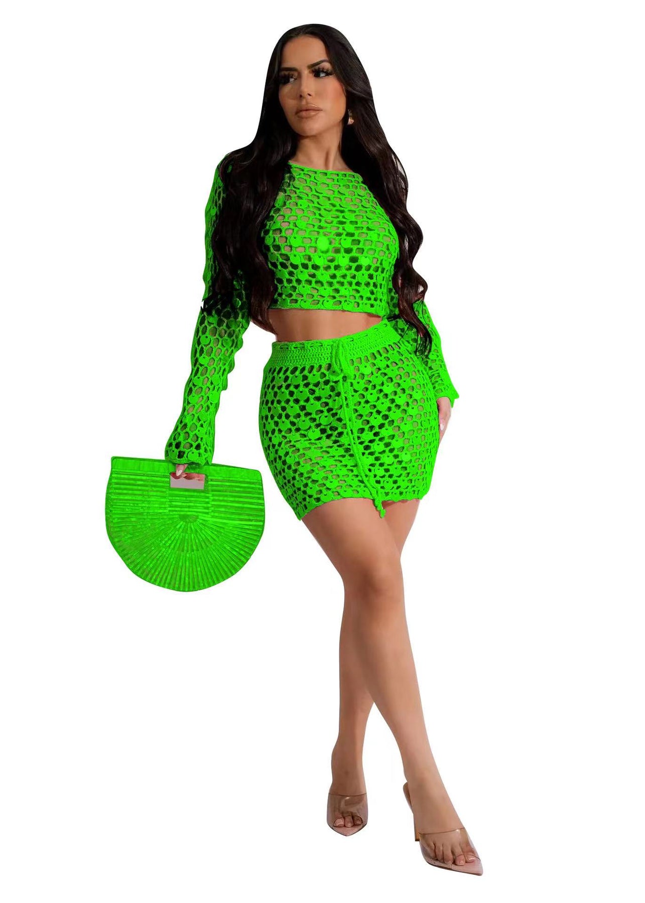 Knitted hollow cool beach skirt 2pc set(CL12185)