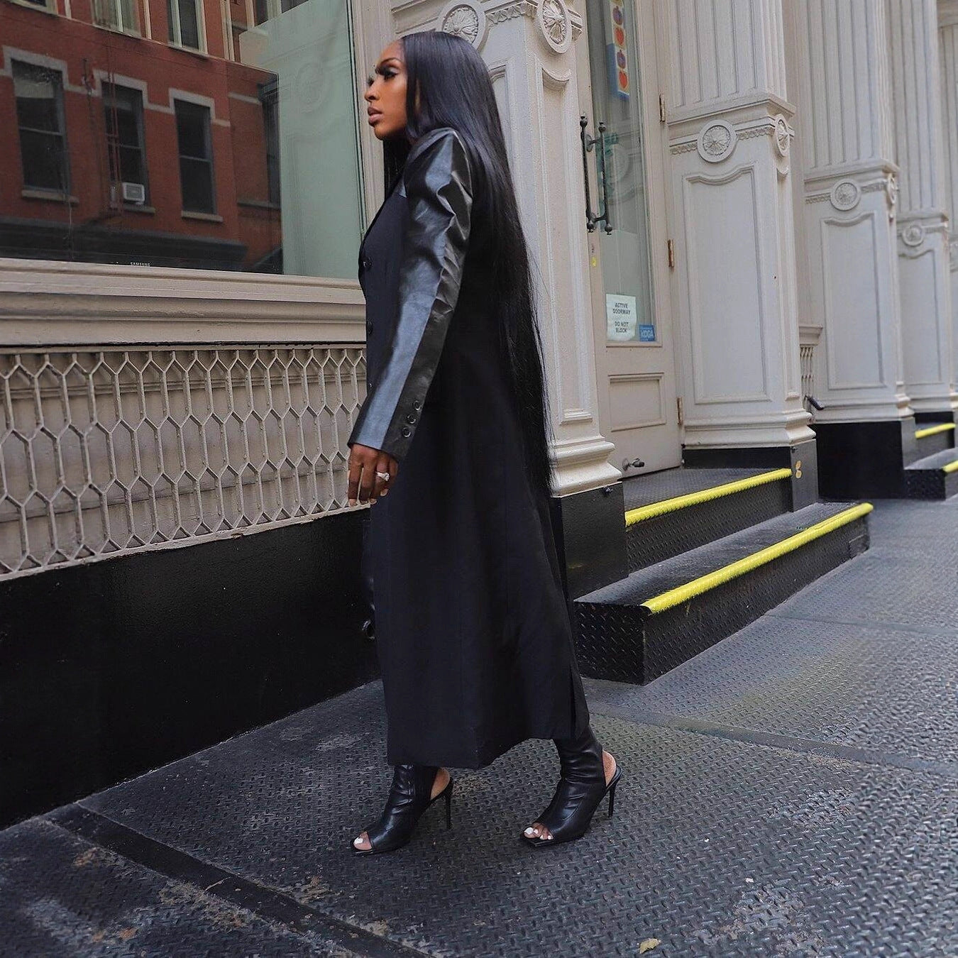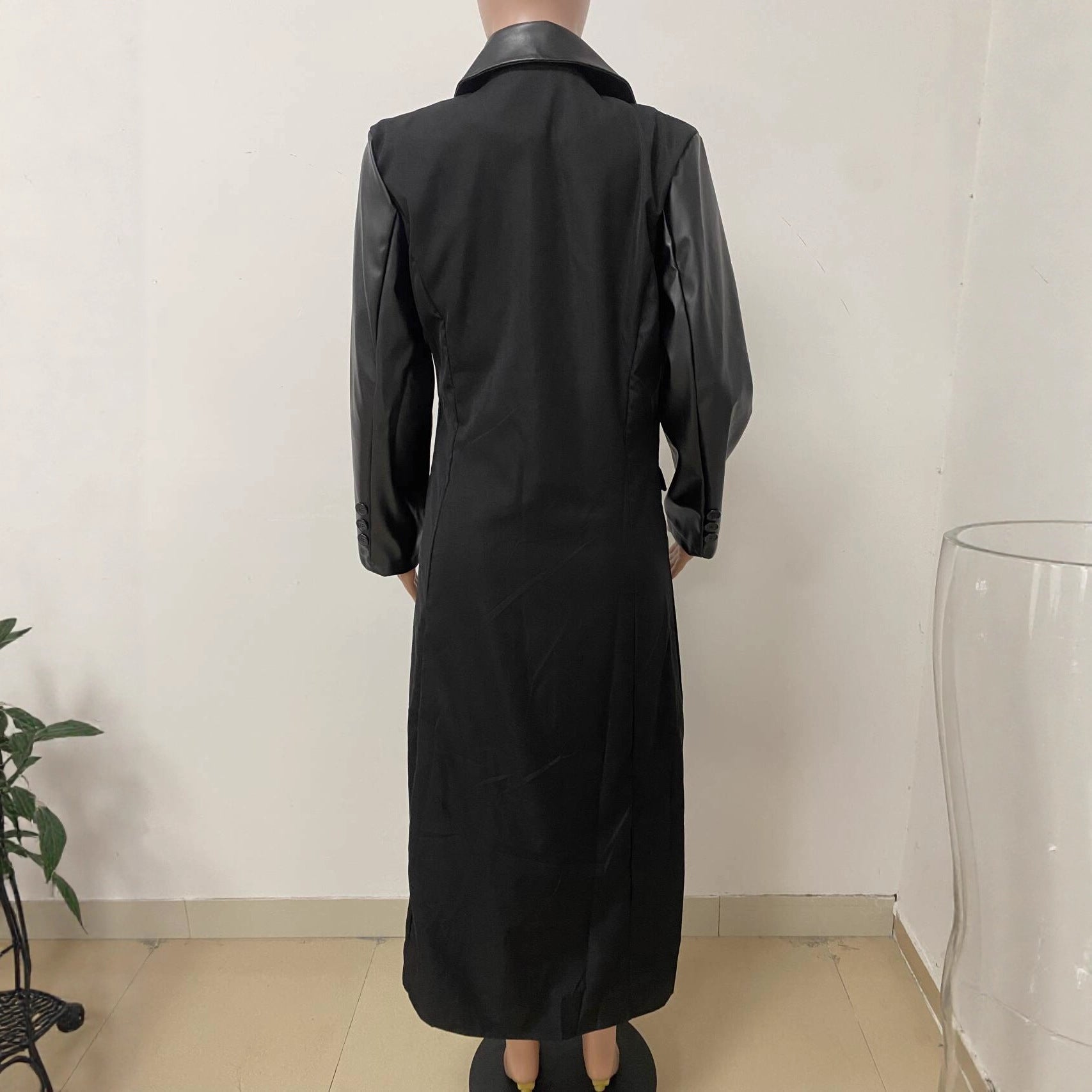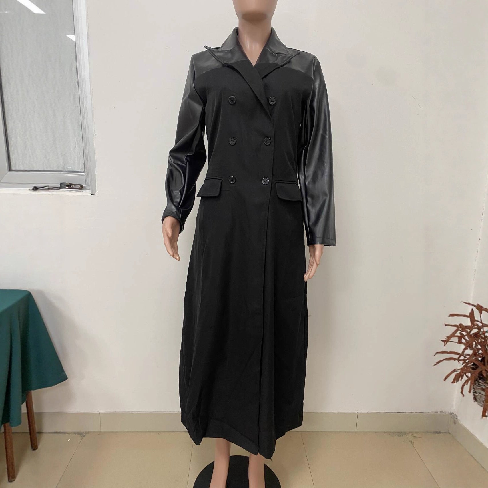 Long coat with lapel, double-breasted button pockets, PU sleeves and other design elements(CL12374)