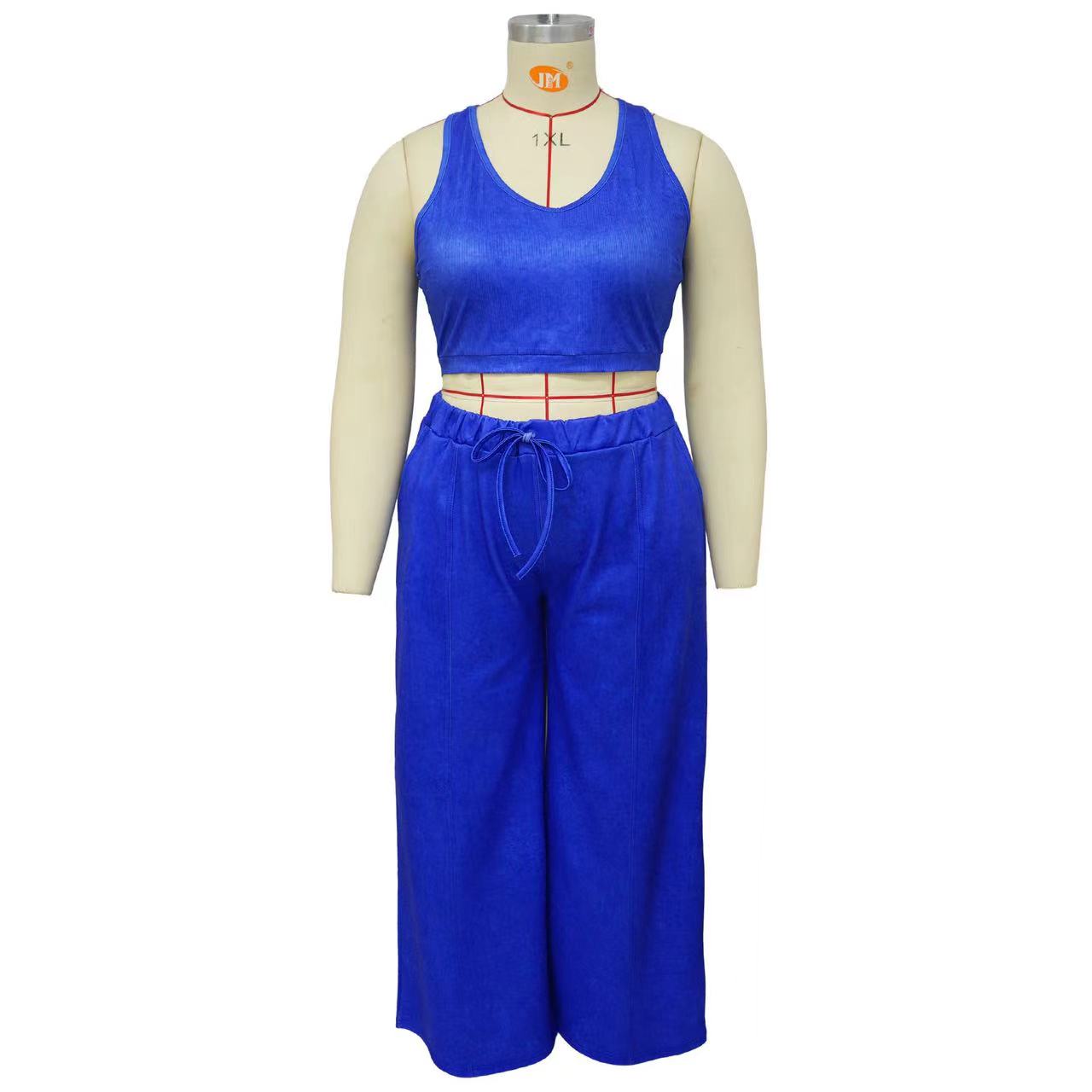 Sleeveless open waist top elastic waist wide-leg pants 2pc set(CL12143)