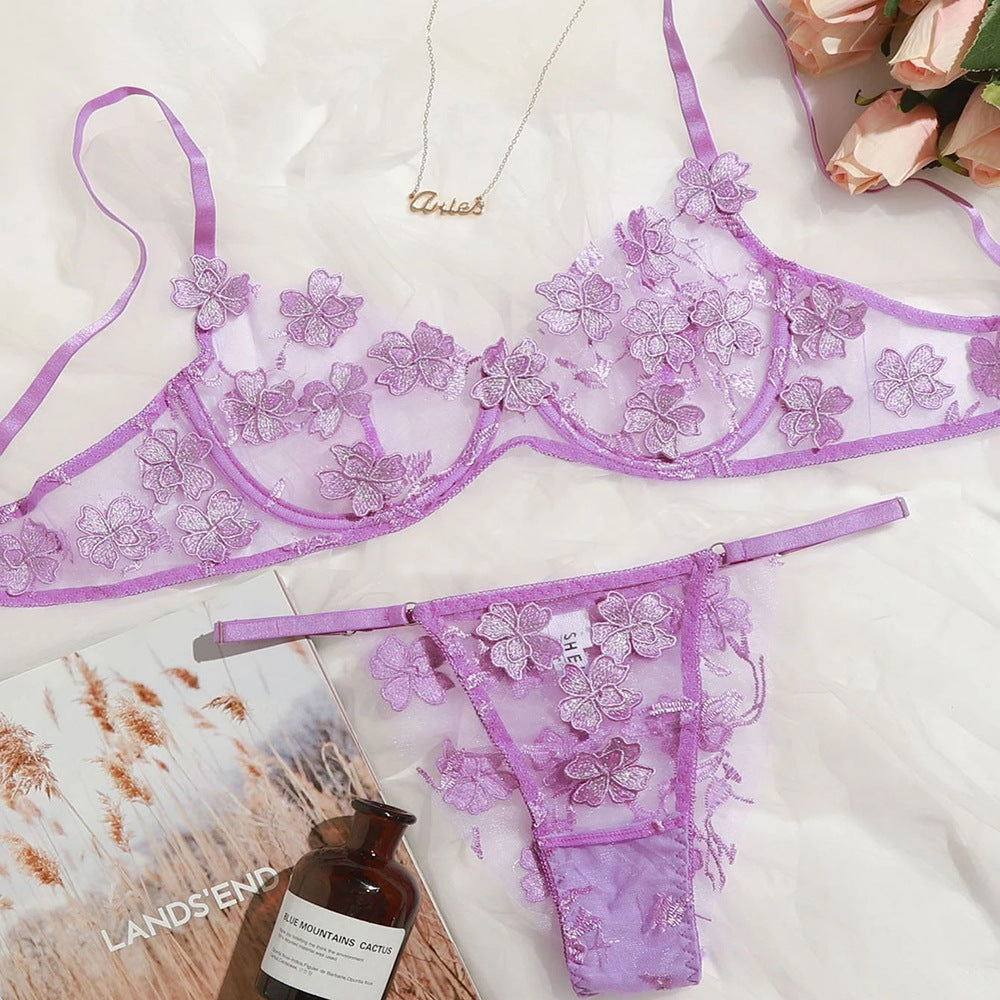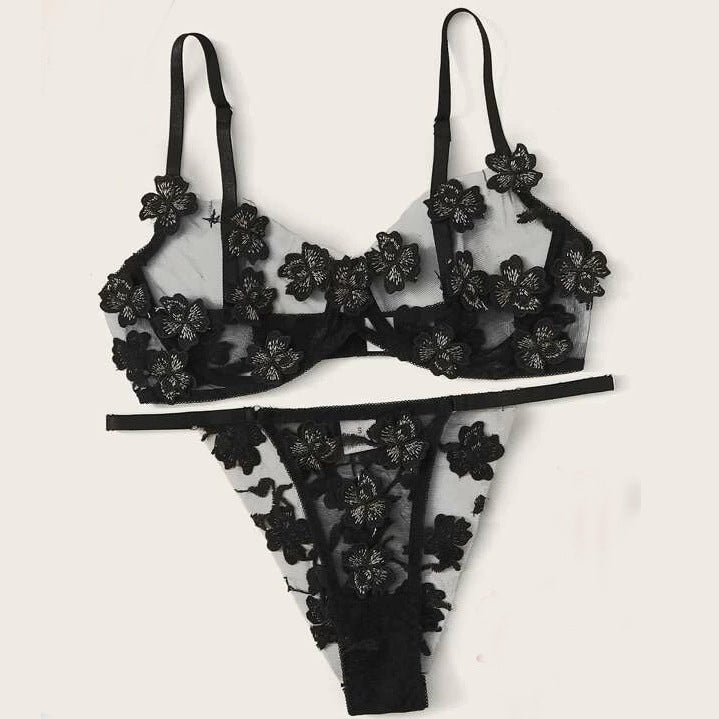 Sexy Suit Ladies Embroidery Applique Mesh Underwear (Cl9844)