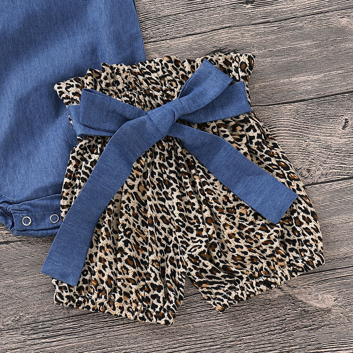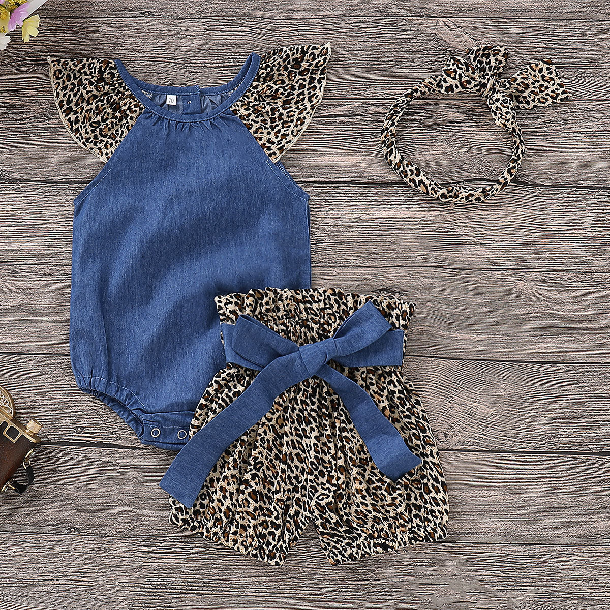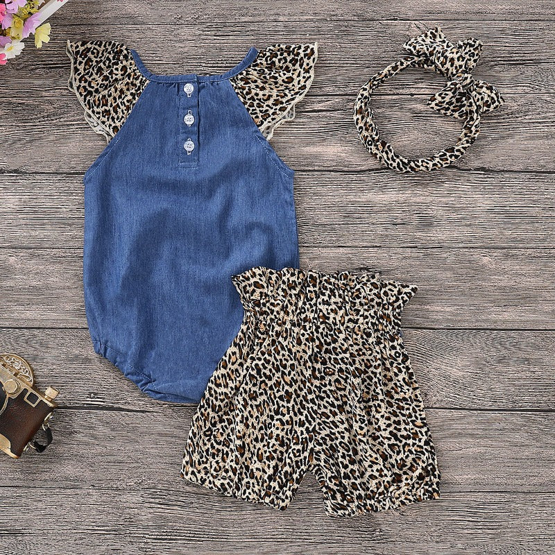 FREE SHIPPING Children's leopard denim three-piece suit(FC8072)