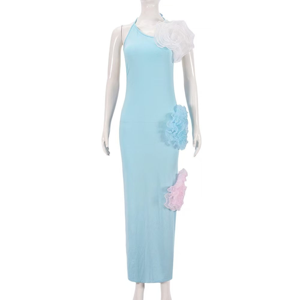 3D three-dimensional rose backless neck dress(CL12310)