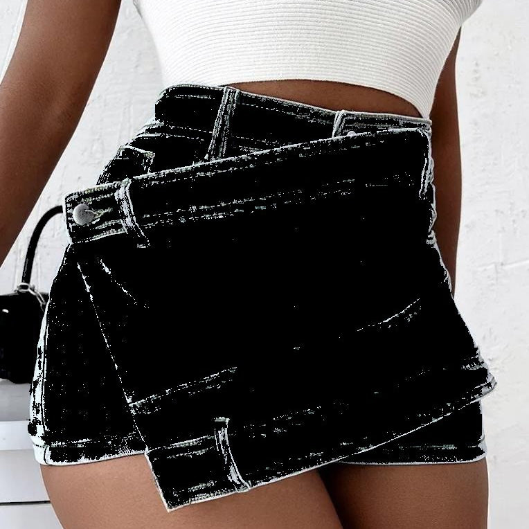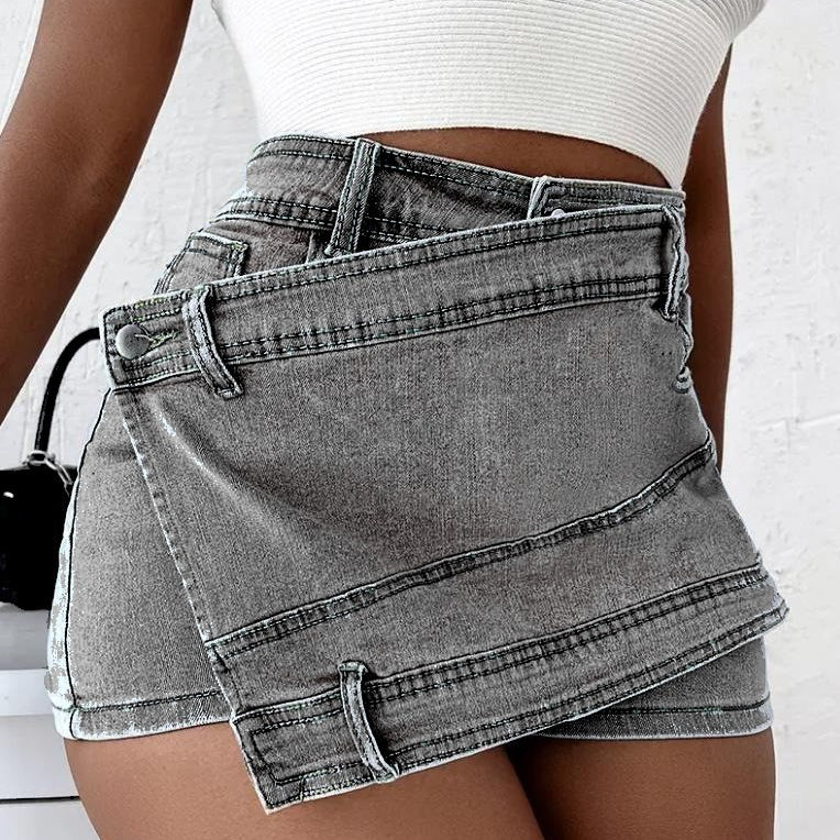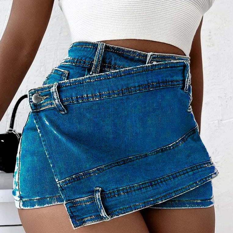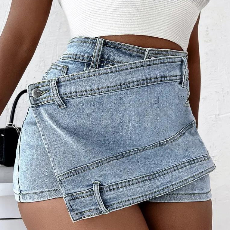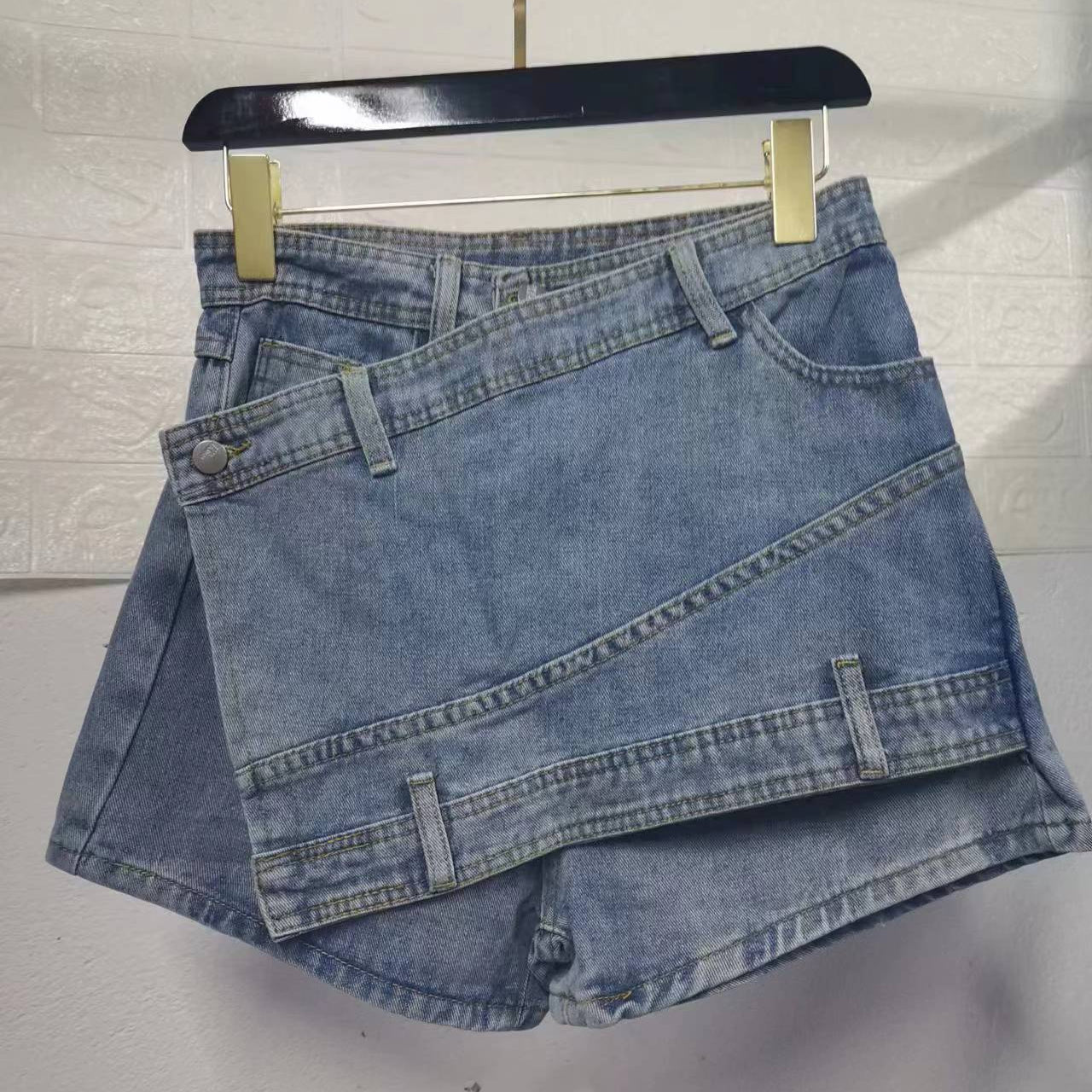 A- line High Waist Irregular Denim Skirt Shorts(CL11692)