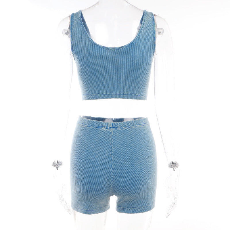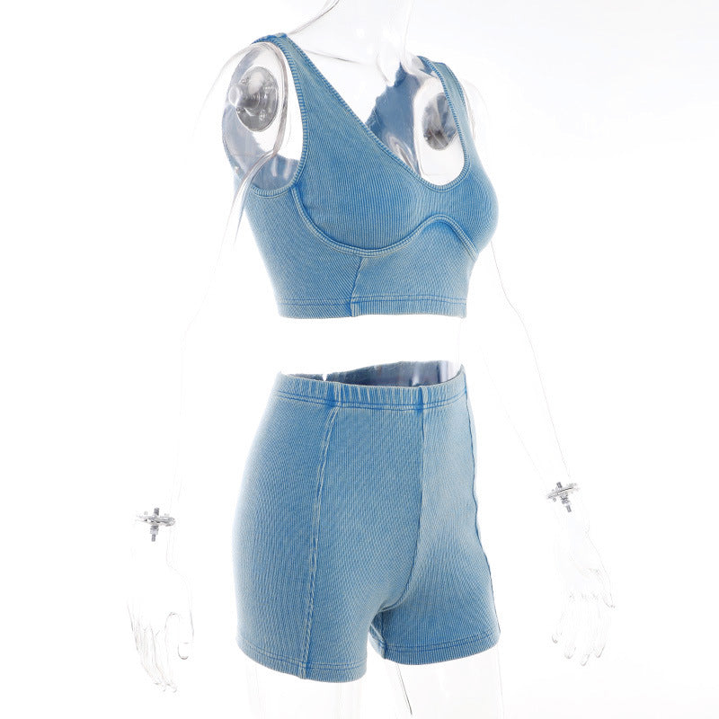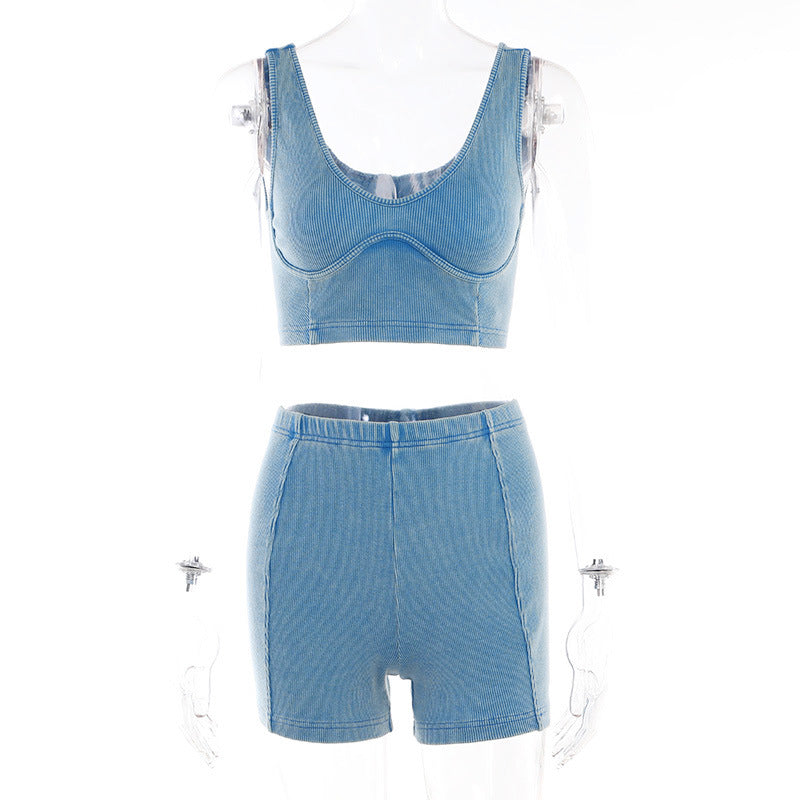Camisole High Waist Hip Lift Shorts Casual Sports 2PC (CL11861)