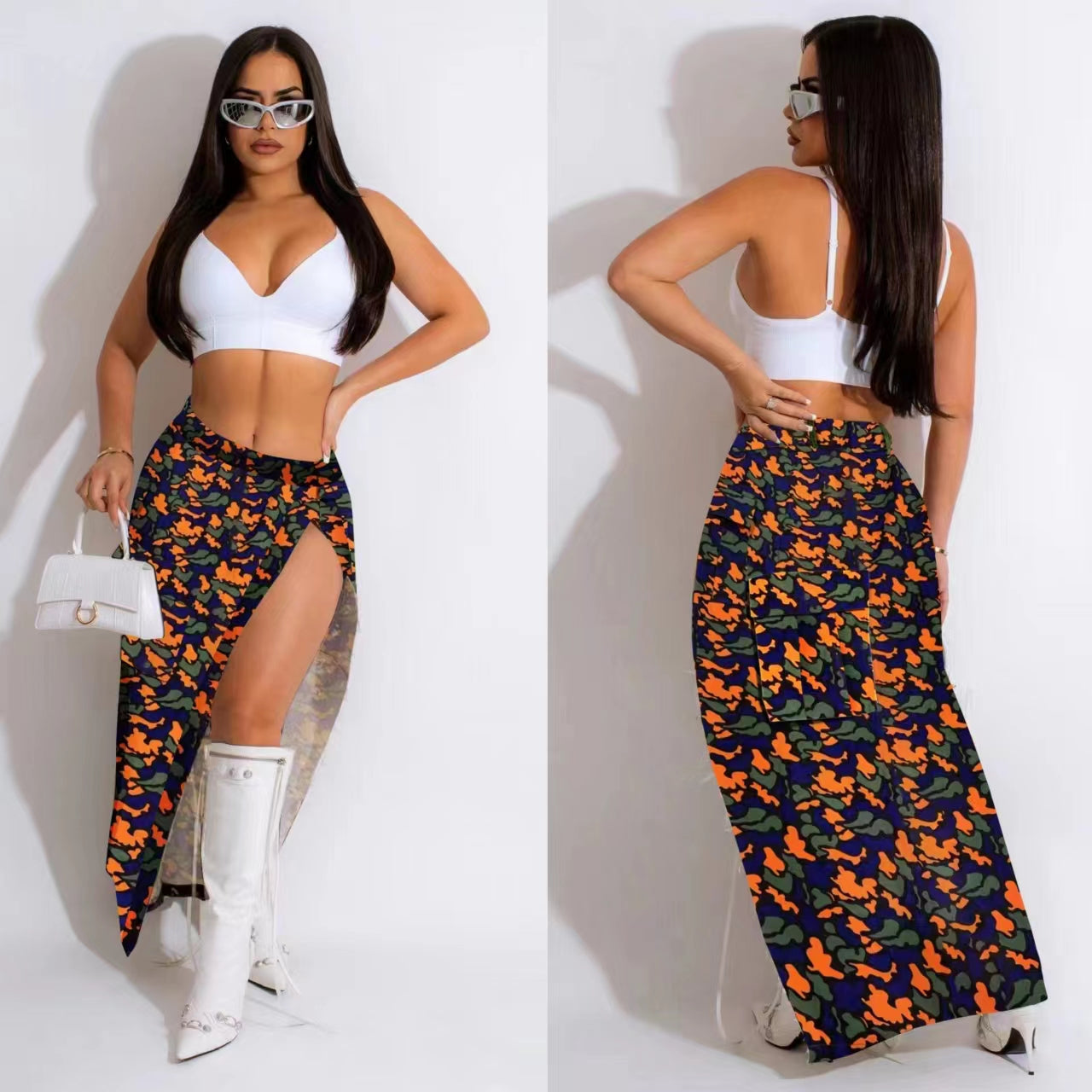 Camouflage Denim Personalized Frayed Skirt(CL11306)
