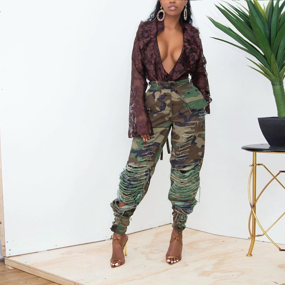 Camouflage Sexy Slim-Fit Skinny Ripped Casual Pants (Cl10727)