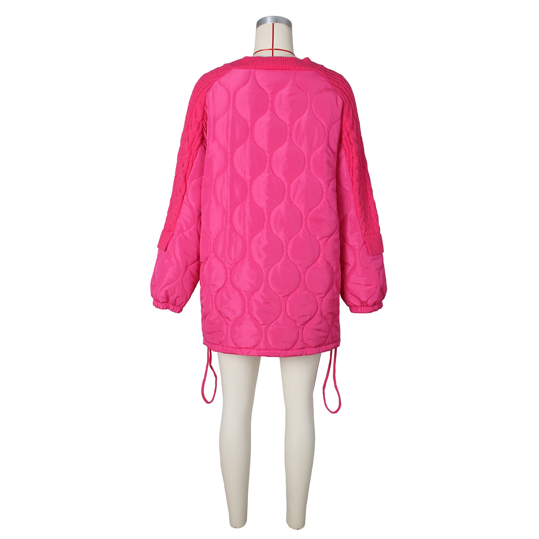Casual loose stitching knitted drawstring cotton-padded jacket (CL12033)