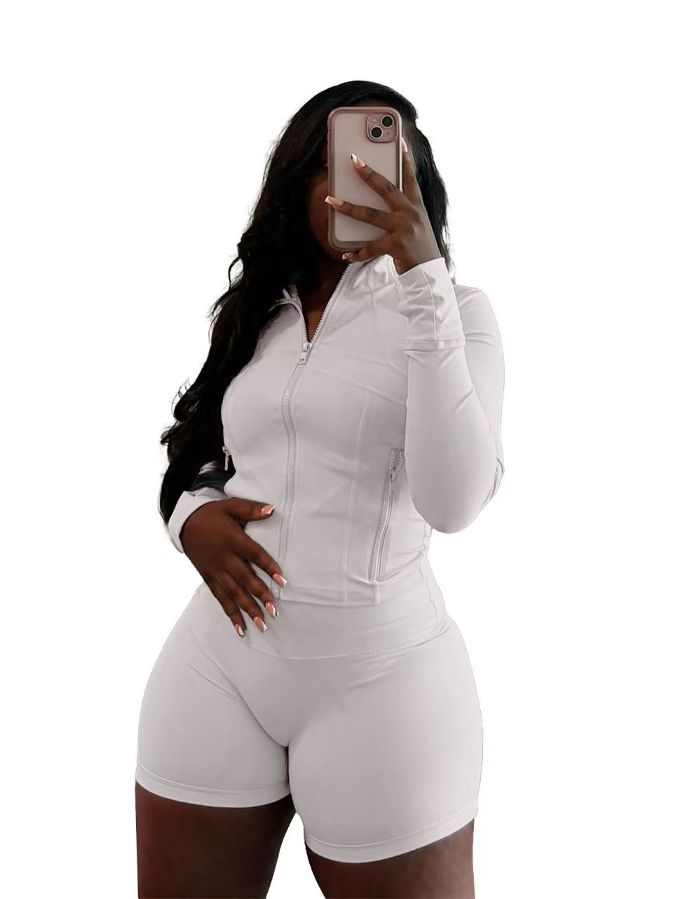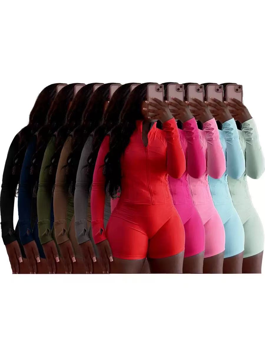 Casual sexy tight-fitting long-sleeved shorts 2pc set(CL12340)