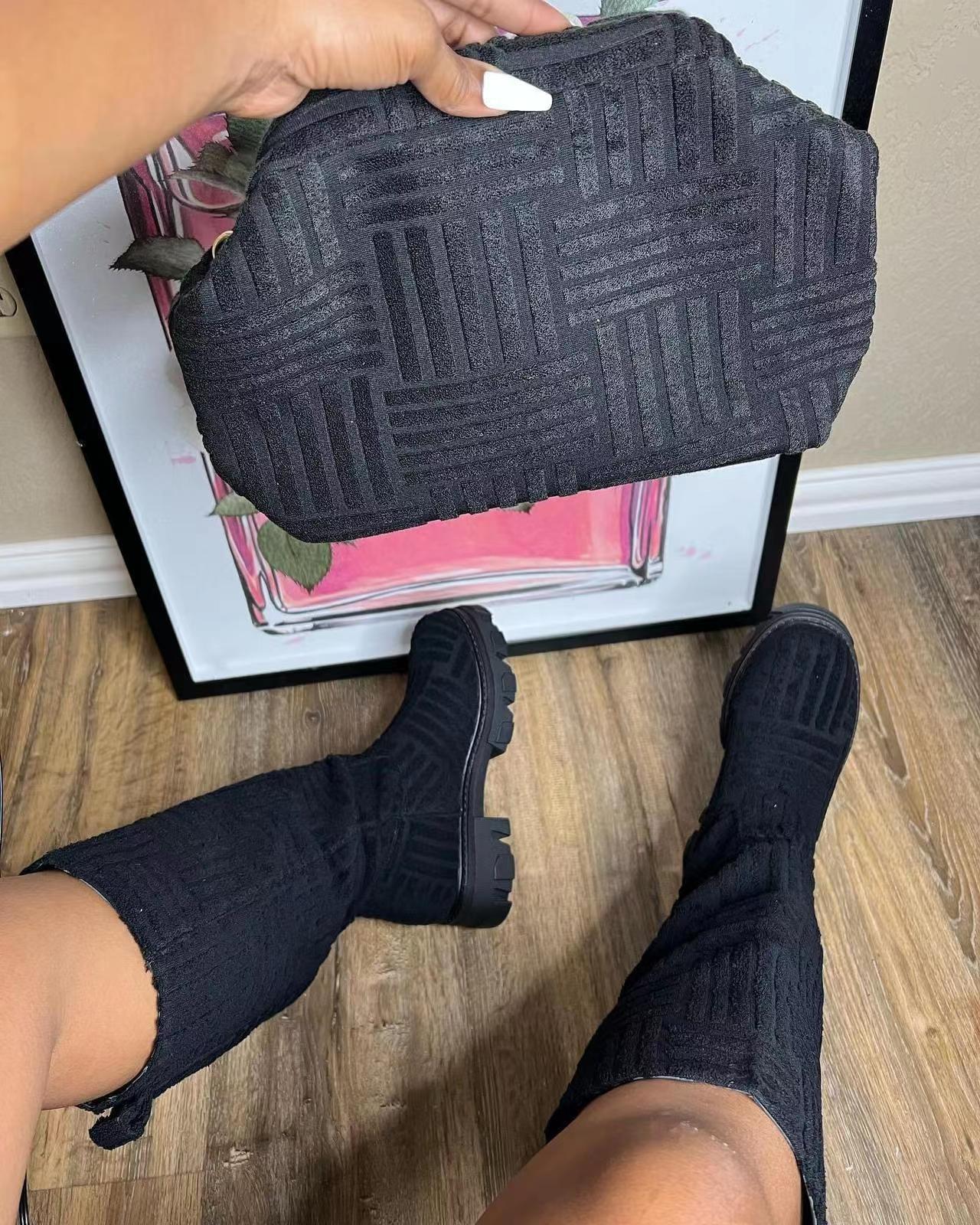 Chunky Heel Thermal Towel Cotton Boots Locomotive Middle Boots(SL8385)