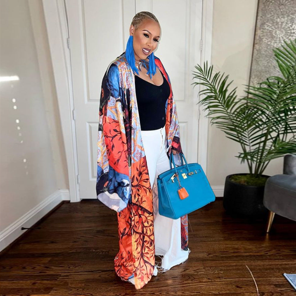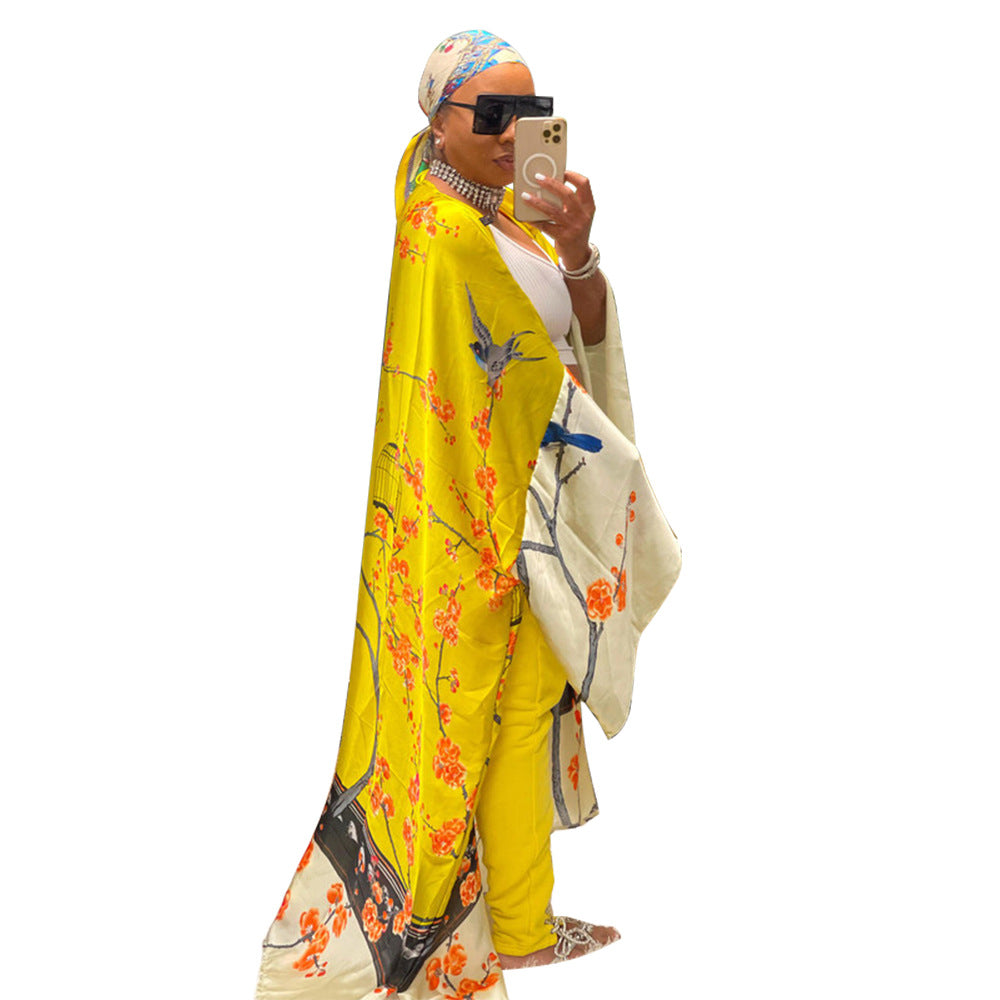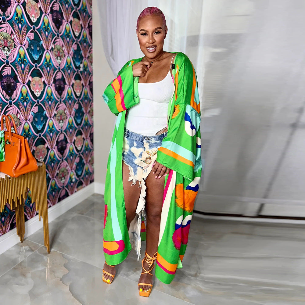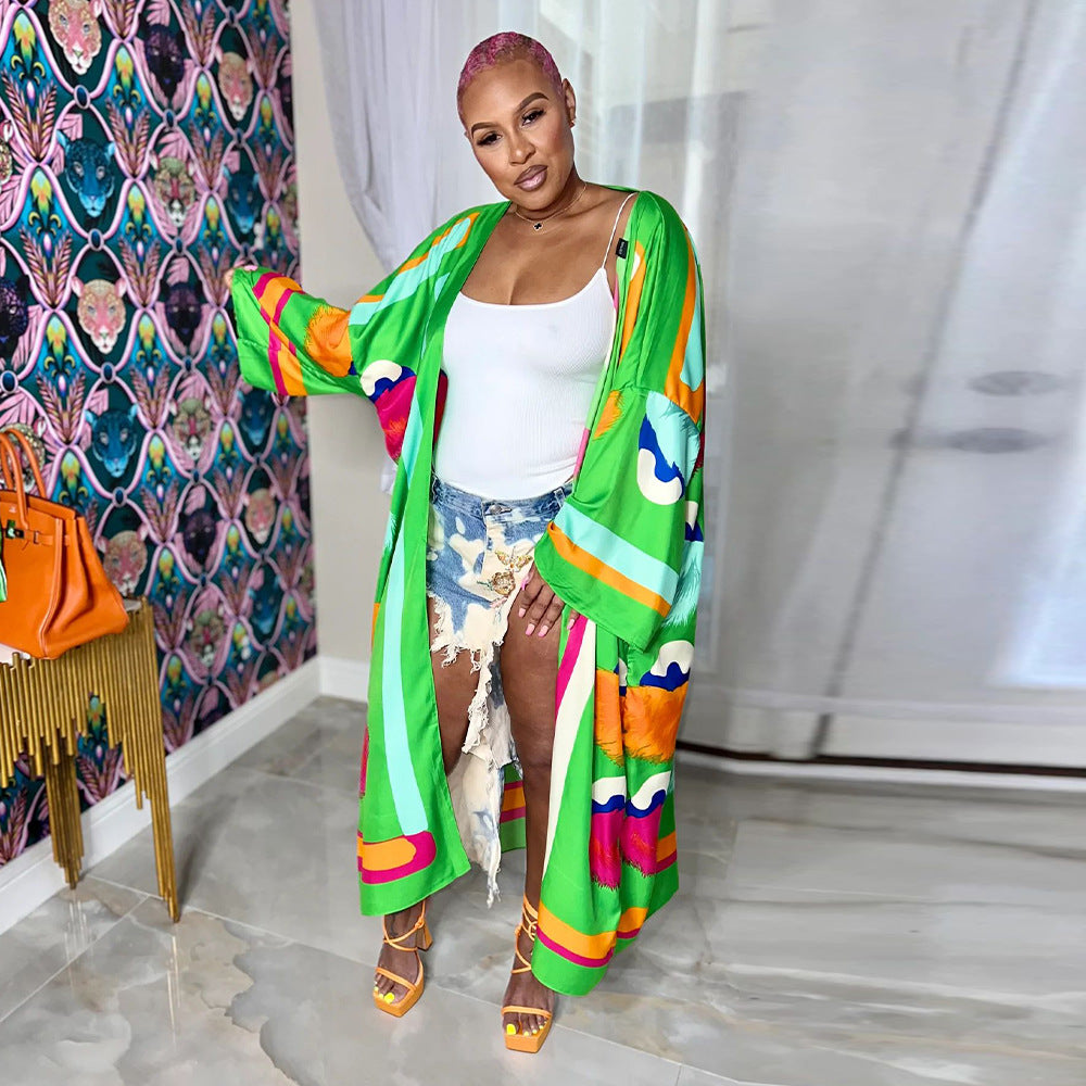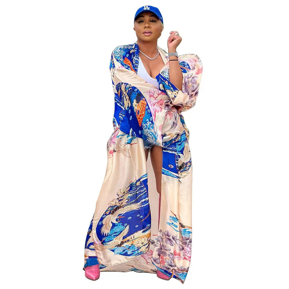 Coat Artificial Silk More than Floral Print Trench Coat (CL10607)