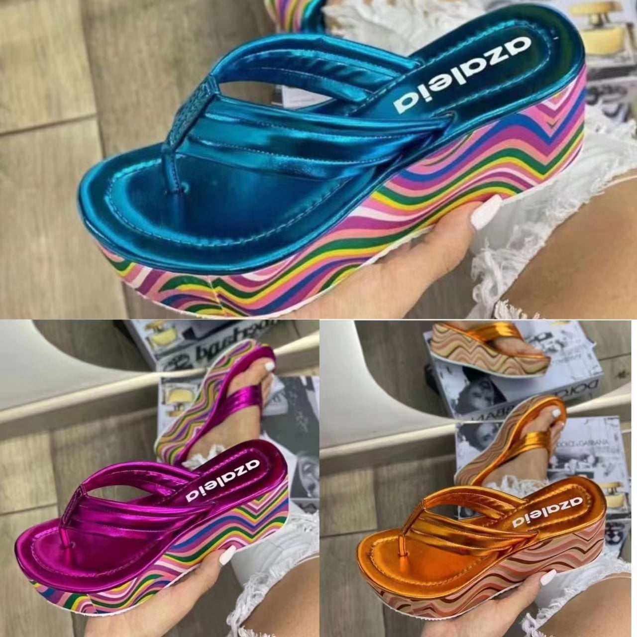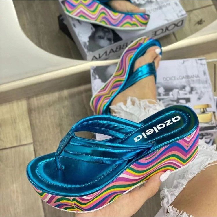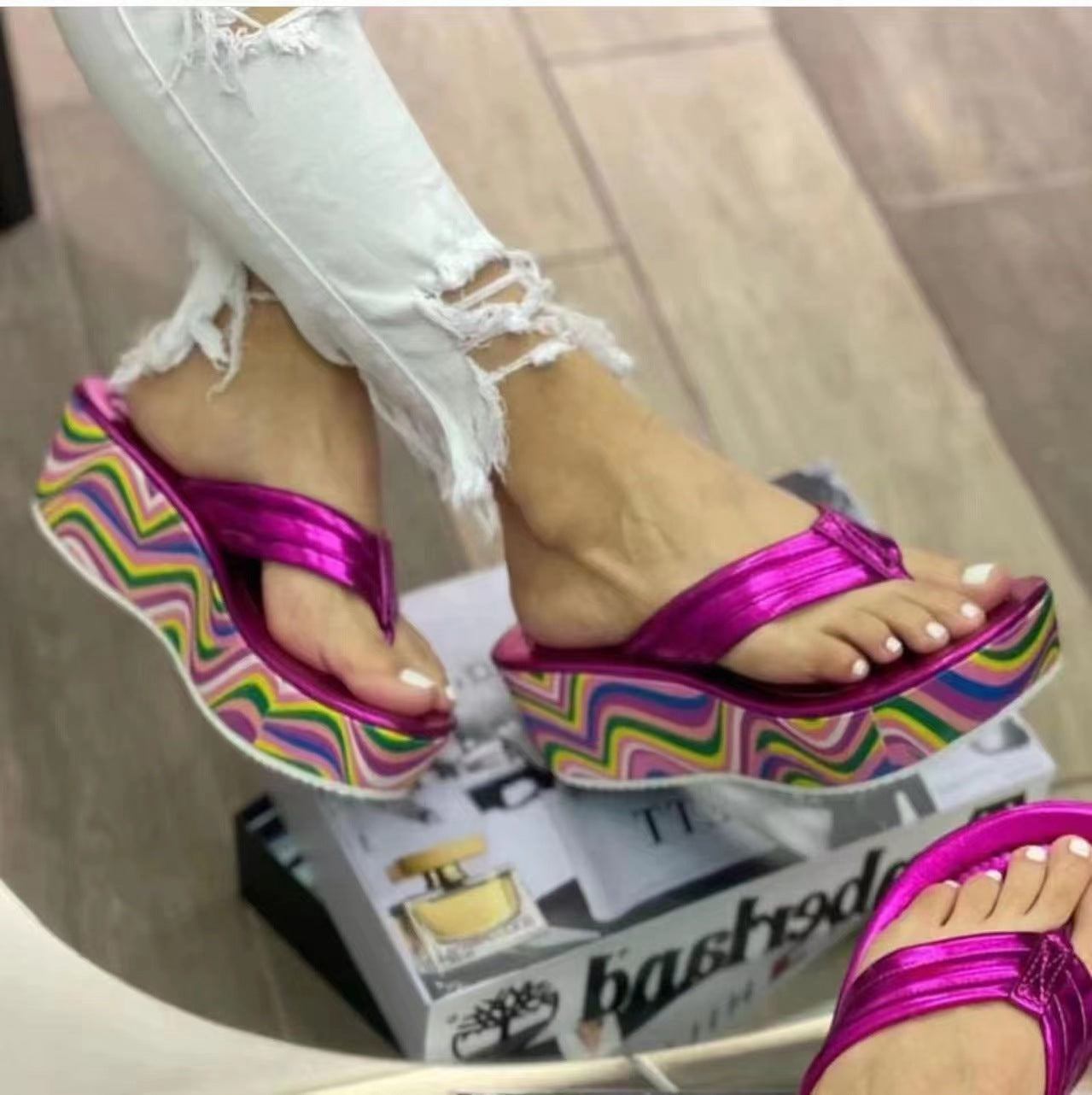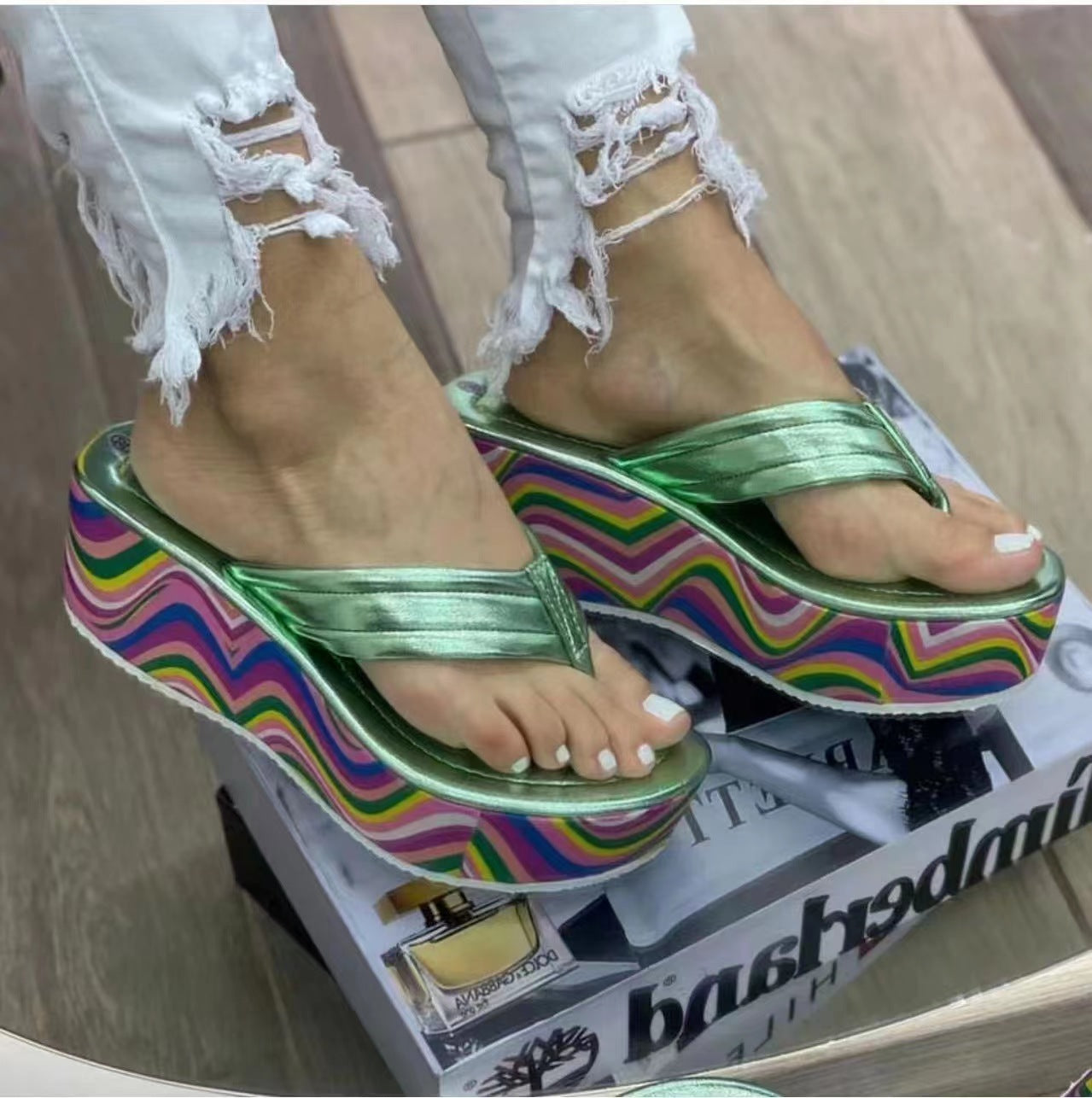 Colorful Glossy Thick Bottom Herringbone Beach Slippers(SL8429)