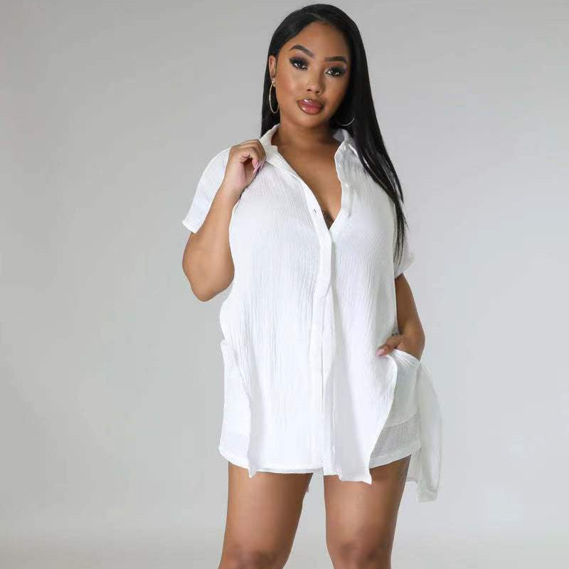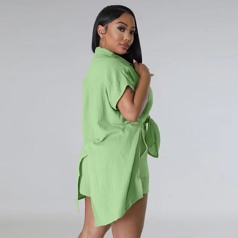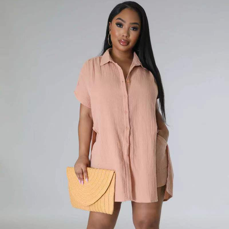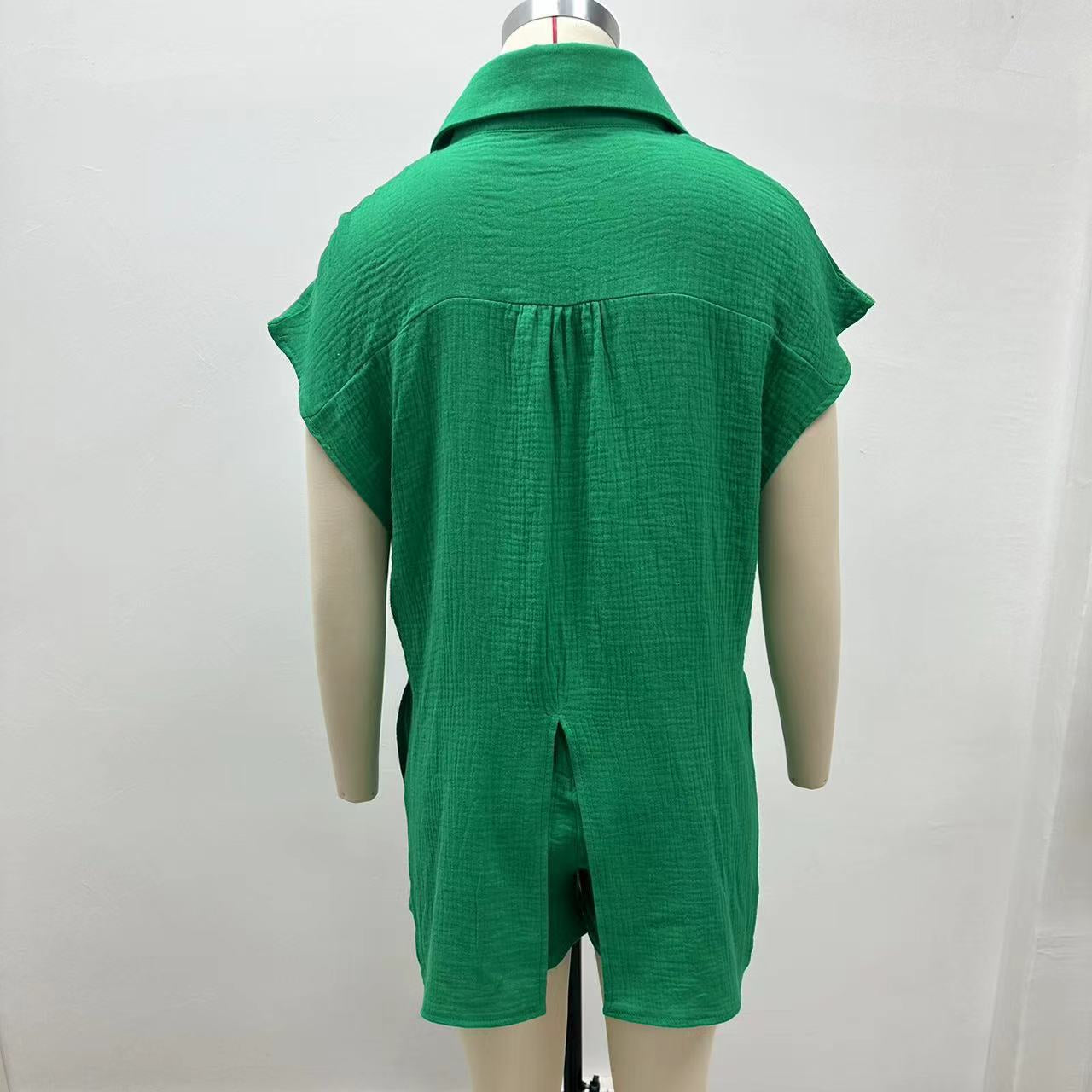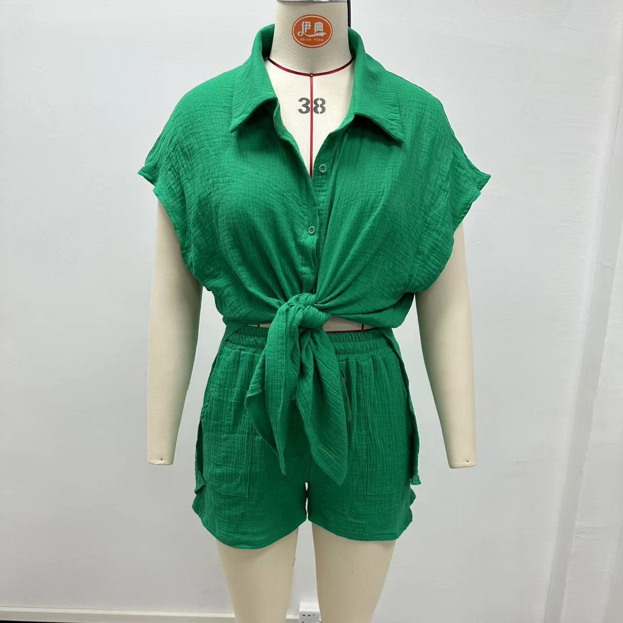 Cotton and Linen Solid Color Shirt Short-Sleeved Casual Shorts Suit(CL11638)