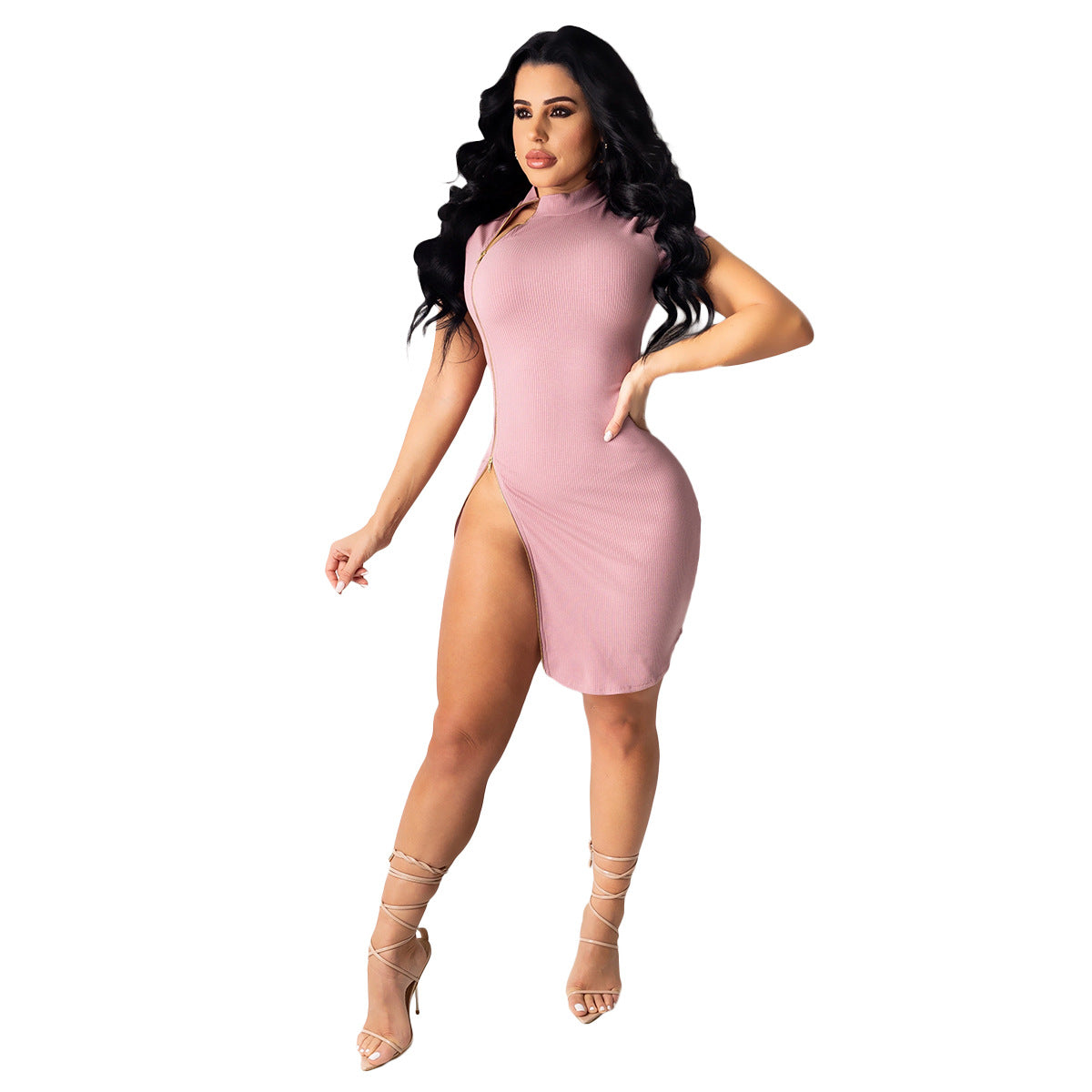 Double-Headed Zipper Short-Sleeved Dress (CL10198)