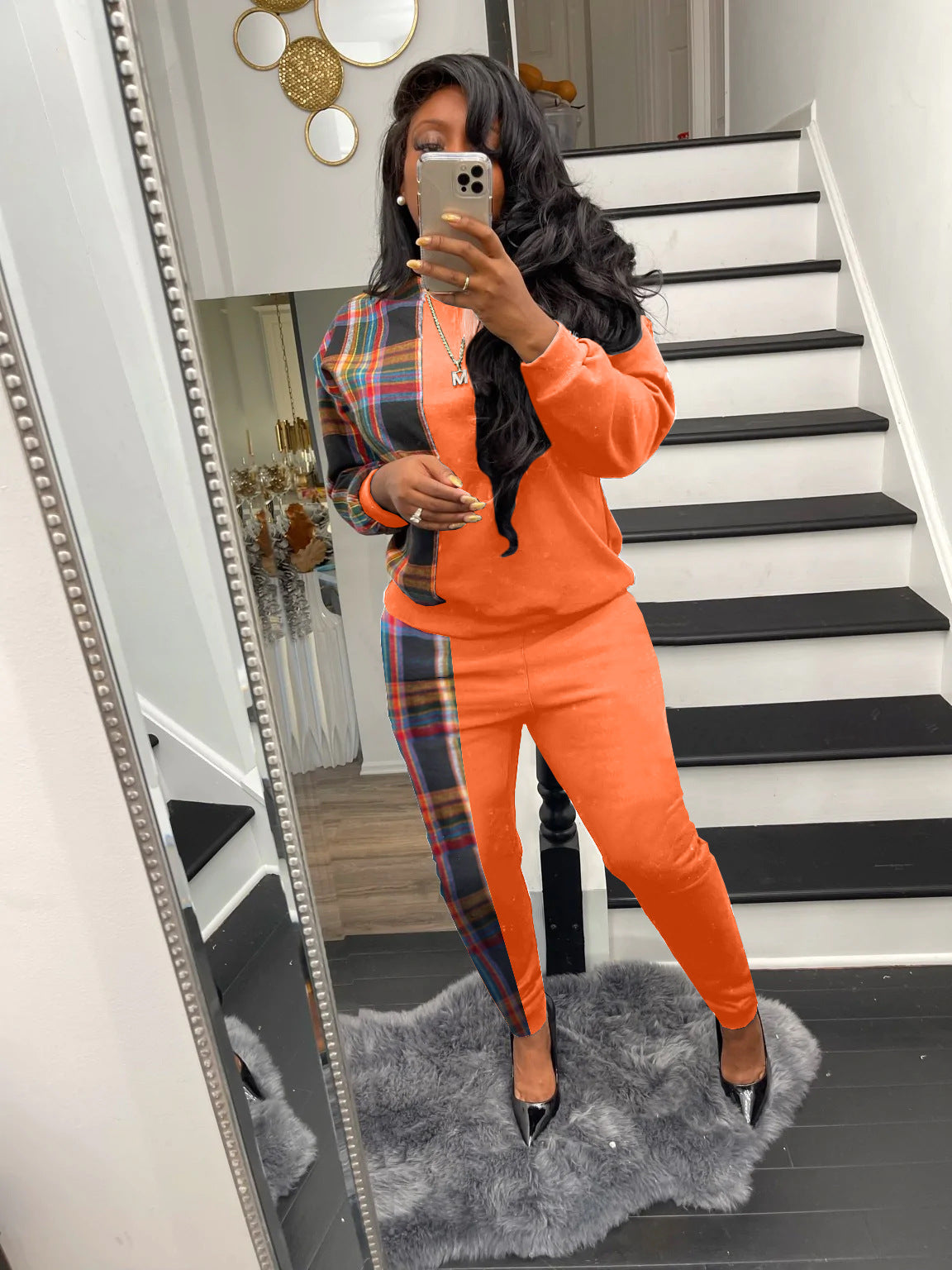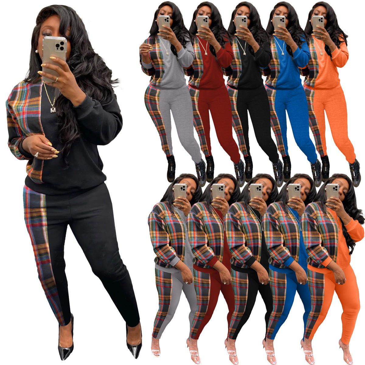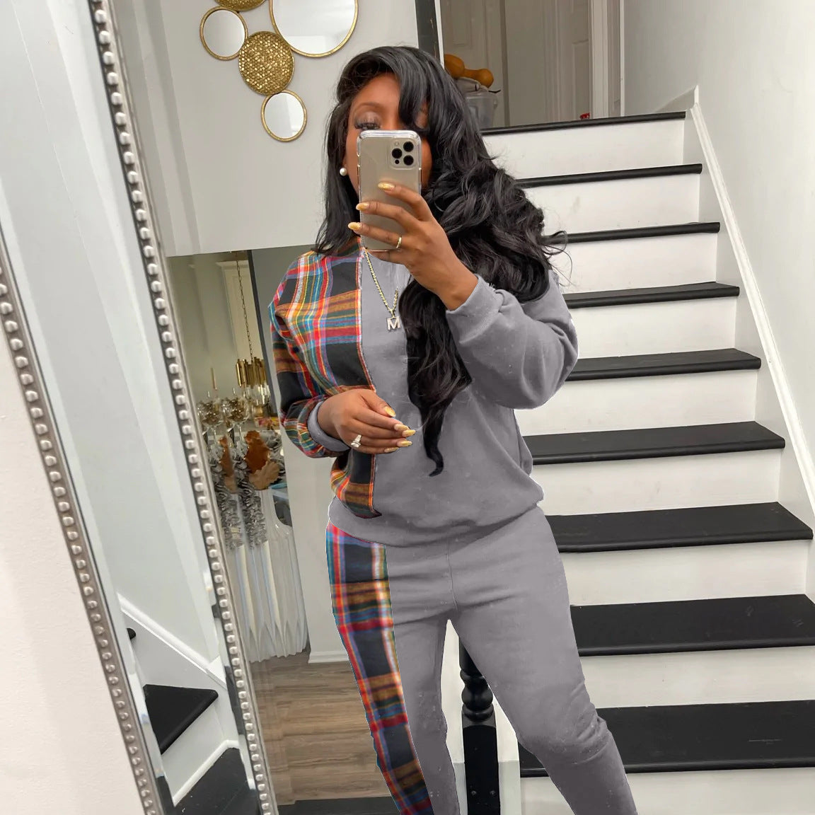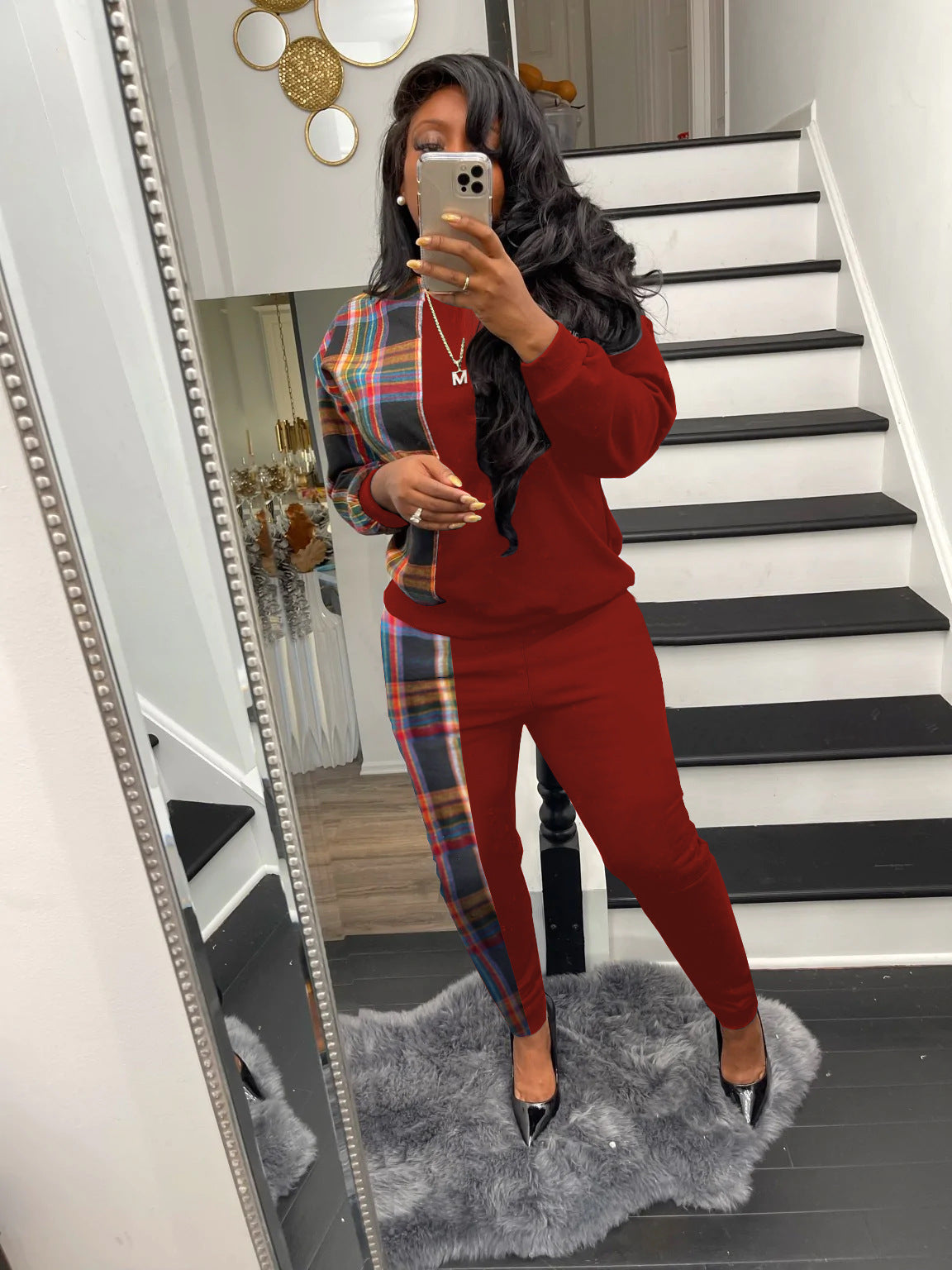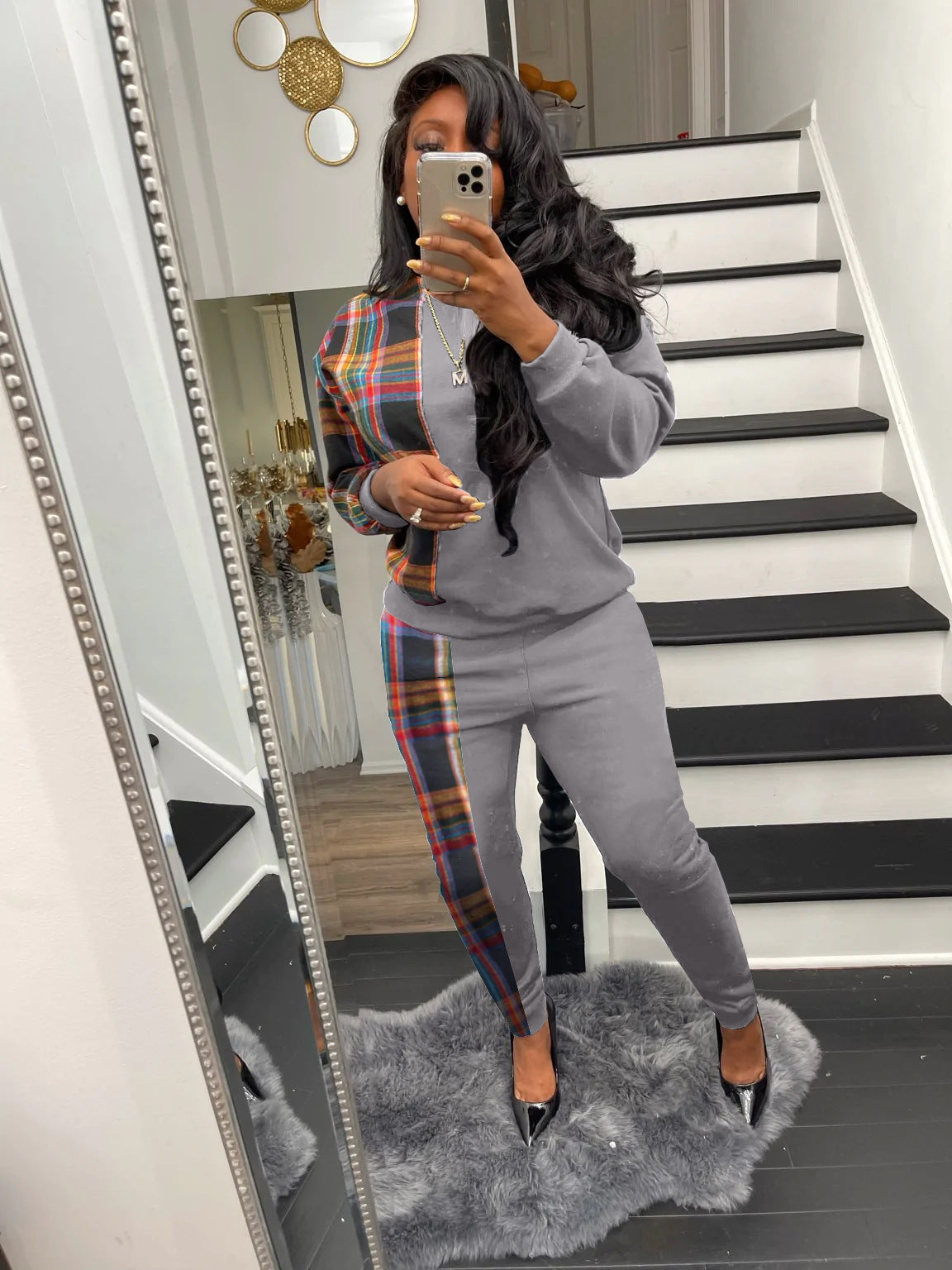 Fashion Casual Positioning Plaid Printed Sweater Two-Piece Set (Cl10681)