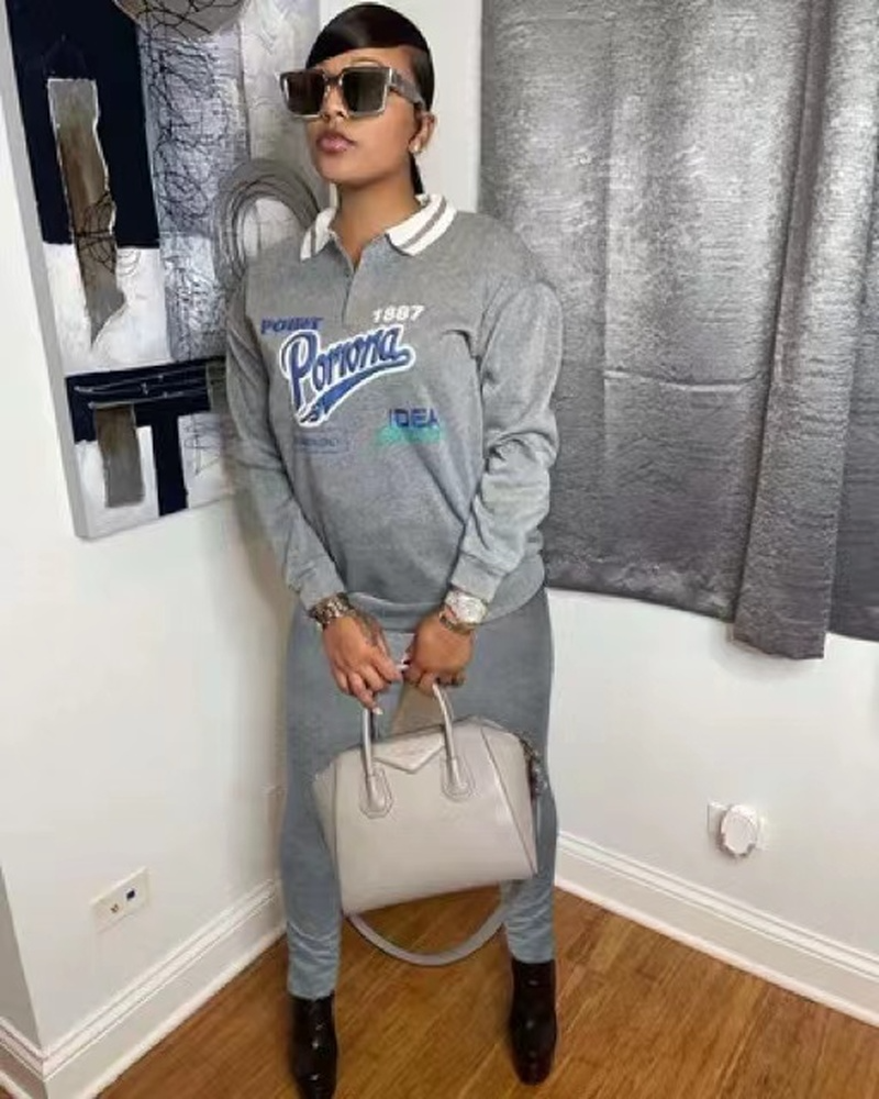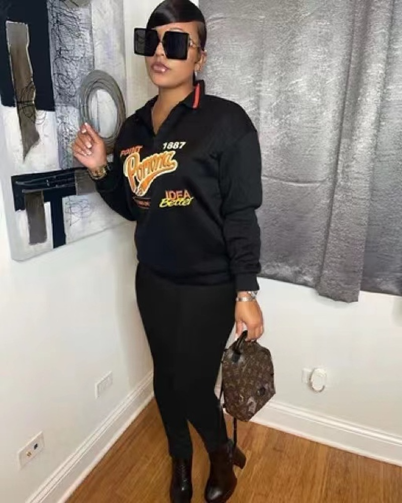 Free shipping autumn and winterwomen's letter printed polo collarlong sleeve 2pcs suit(FC9613 )