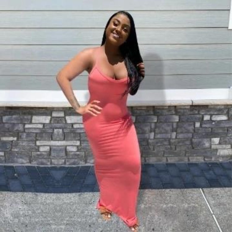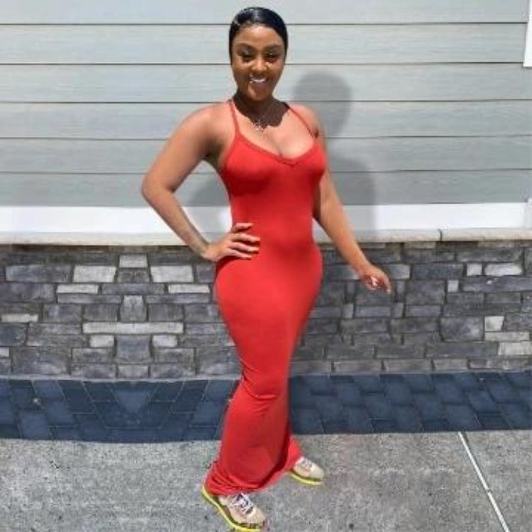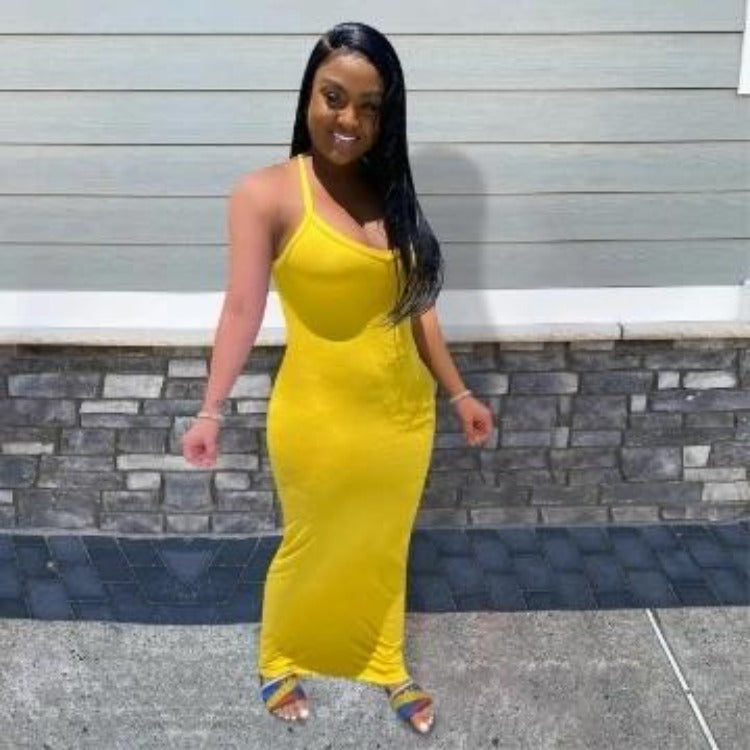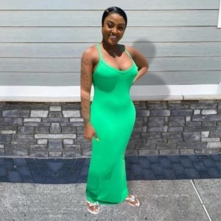 FREE SHIPPING Multicolor suspender long dress(FC8642)