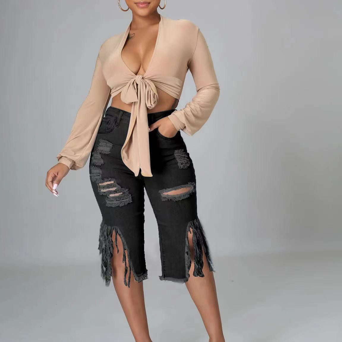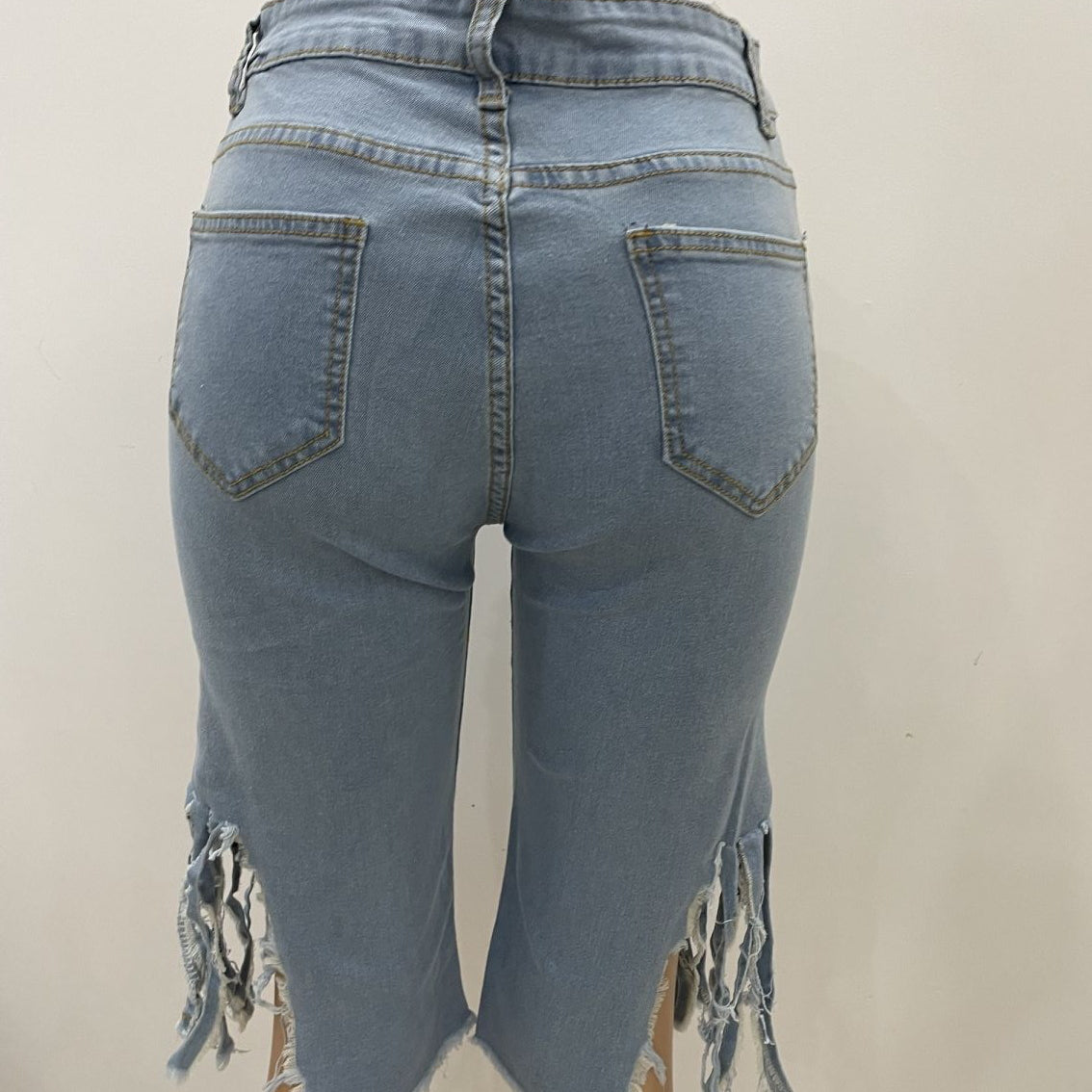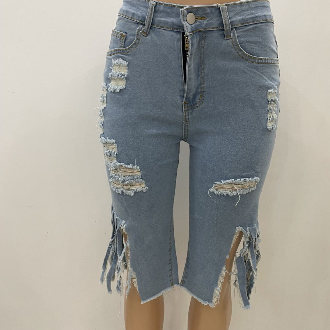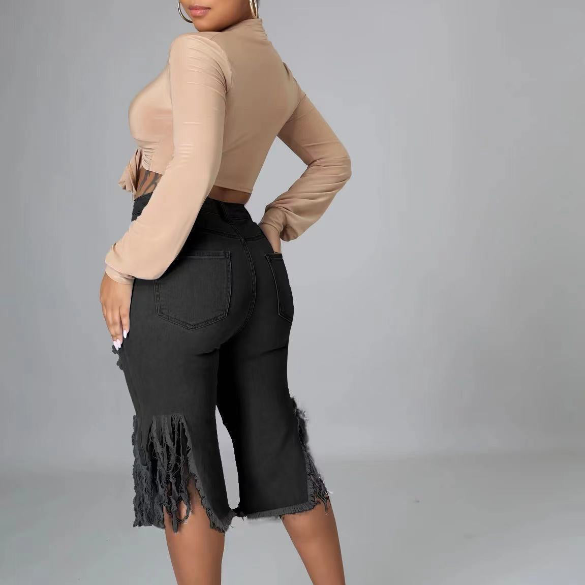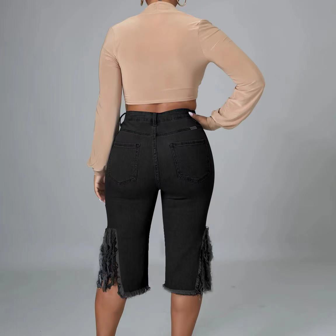 Fringe Ripped Stretch Cropped Jeans (CL10191)