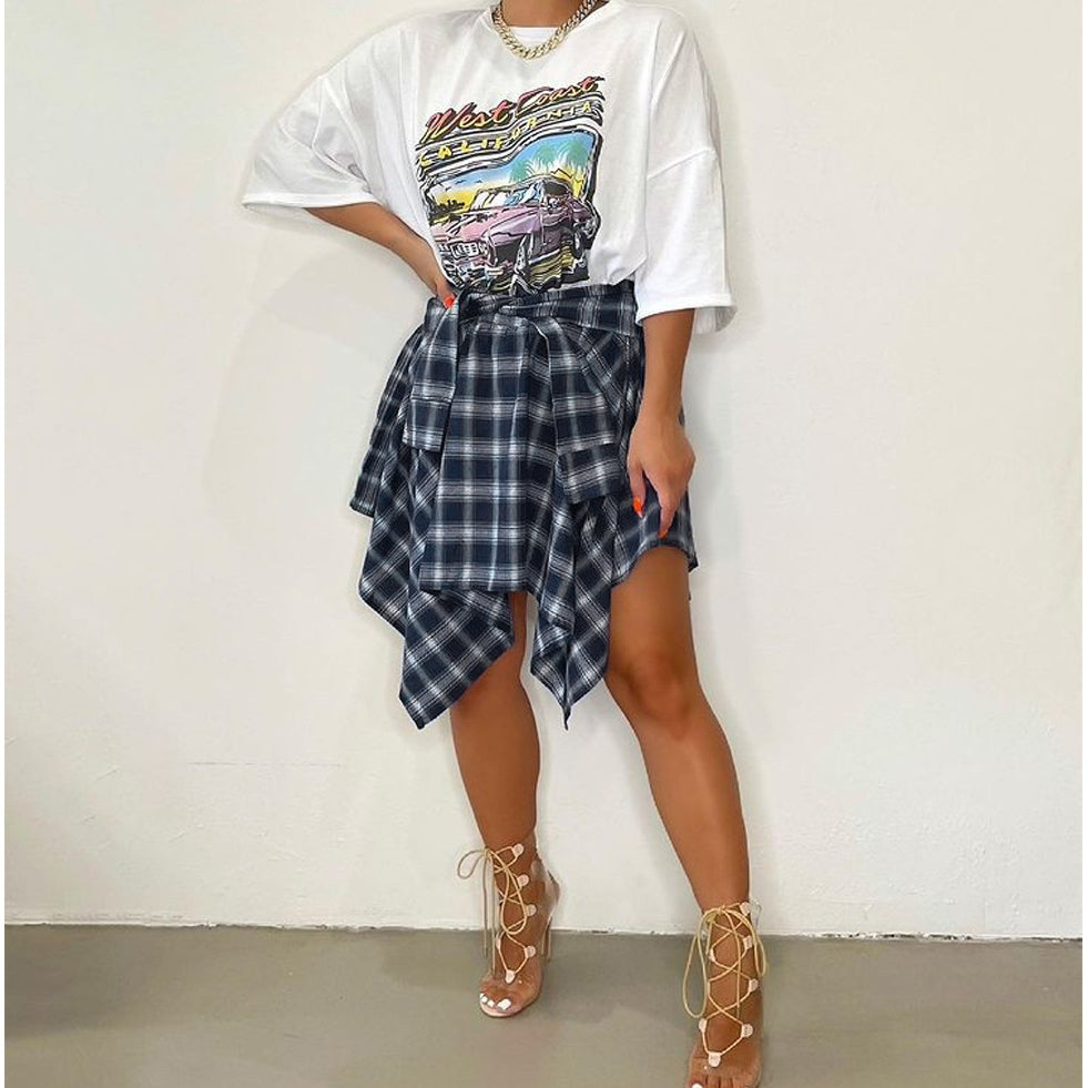 Fashion Irregular Plaid Tied Sleeve Fake Shirt Skirt (CL10023)