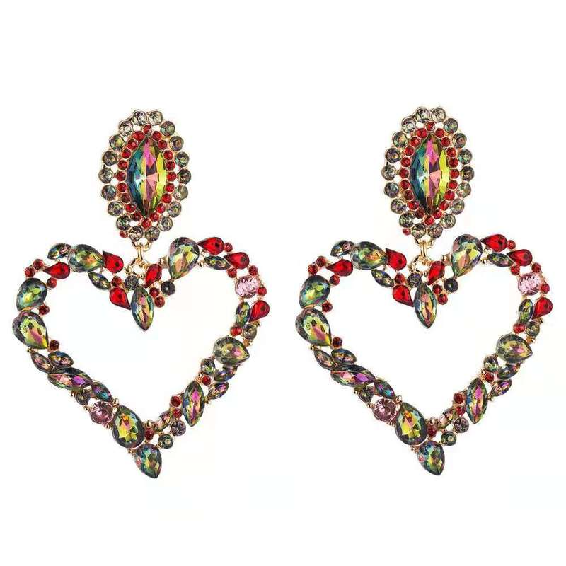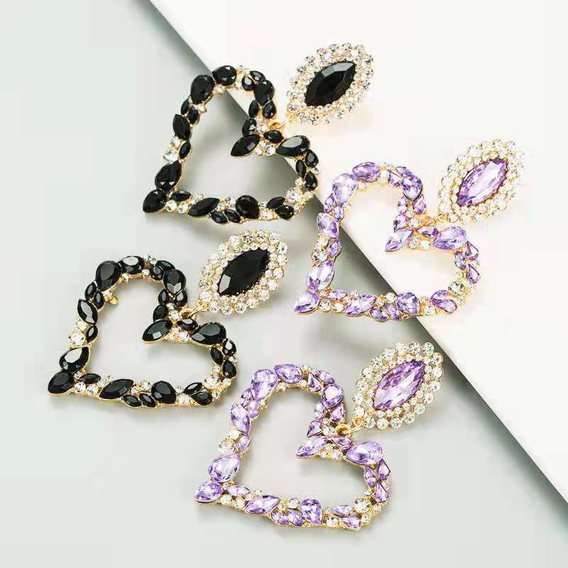 Heart-shaped alloy earrings set with diamond(A0097)