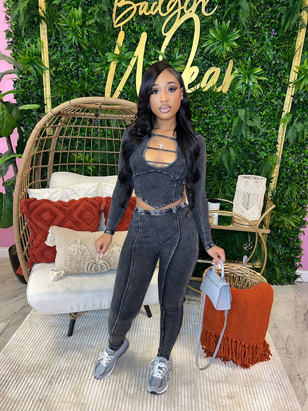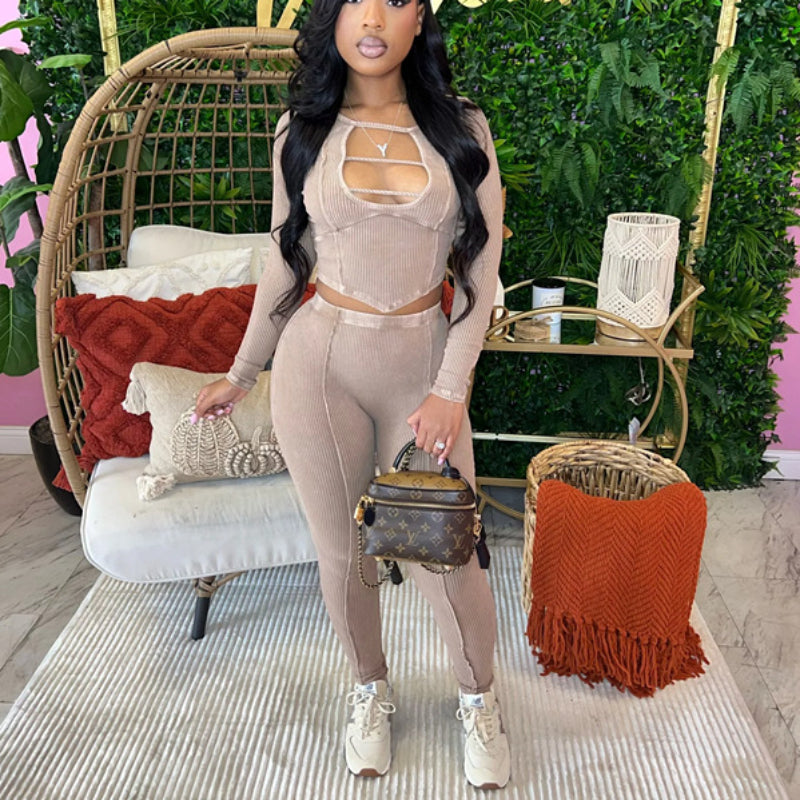 High-quality elastic pit strip tight sexy long-sleeved trousers two-piece suit(CL11993)