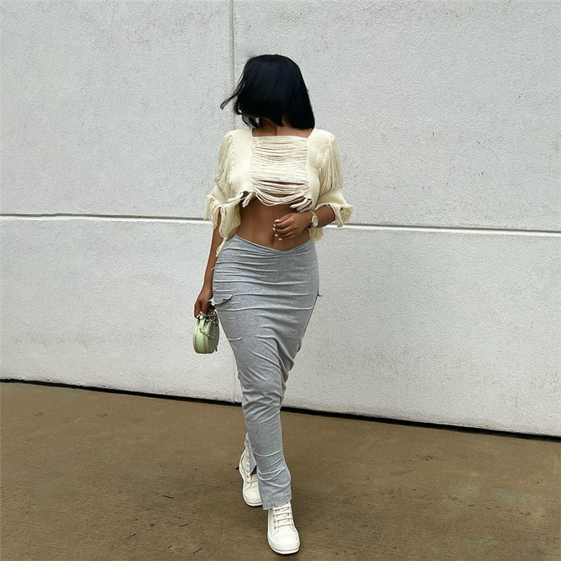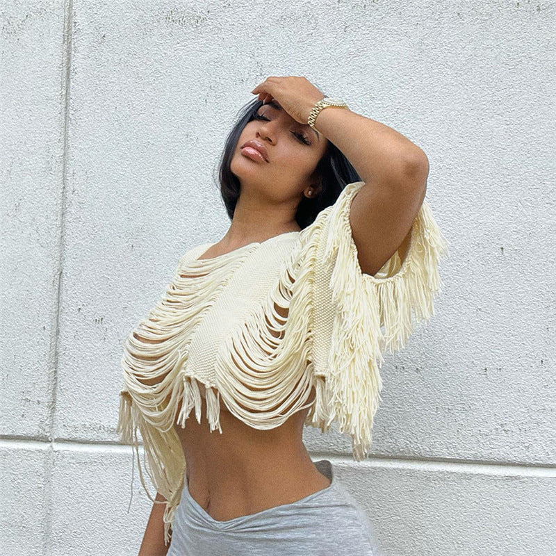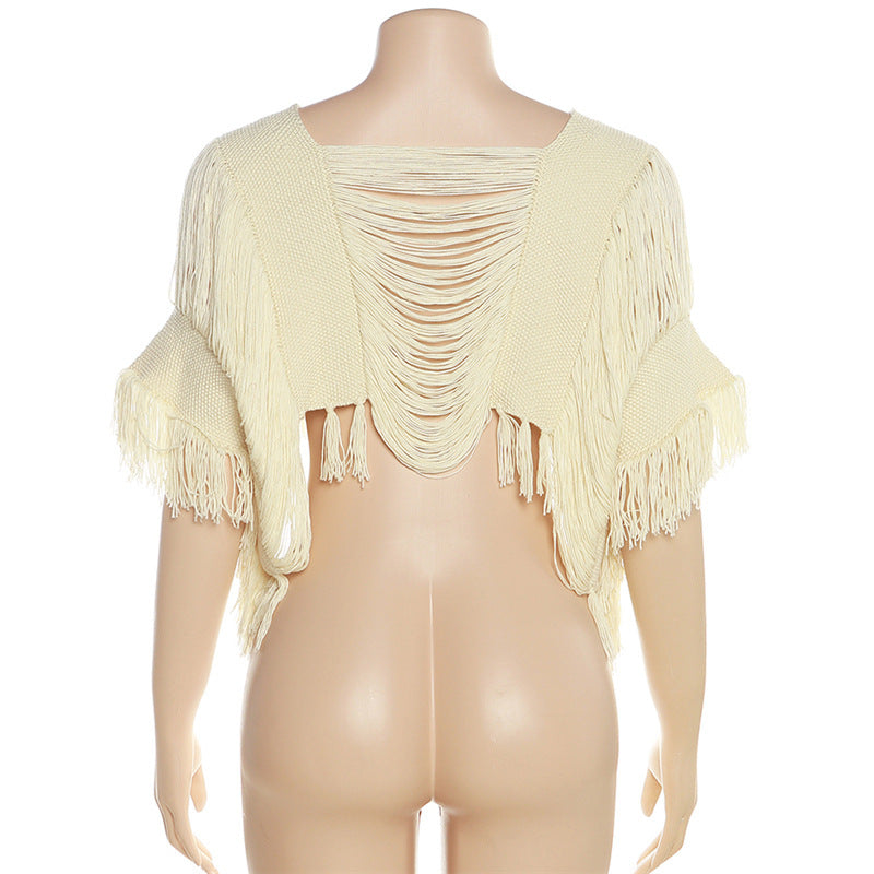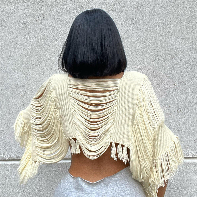 Hollow Fringe Pullover Knitted Blouse Loose Top (CL11409)