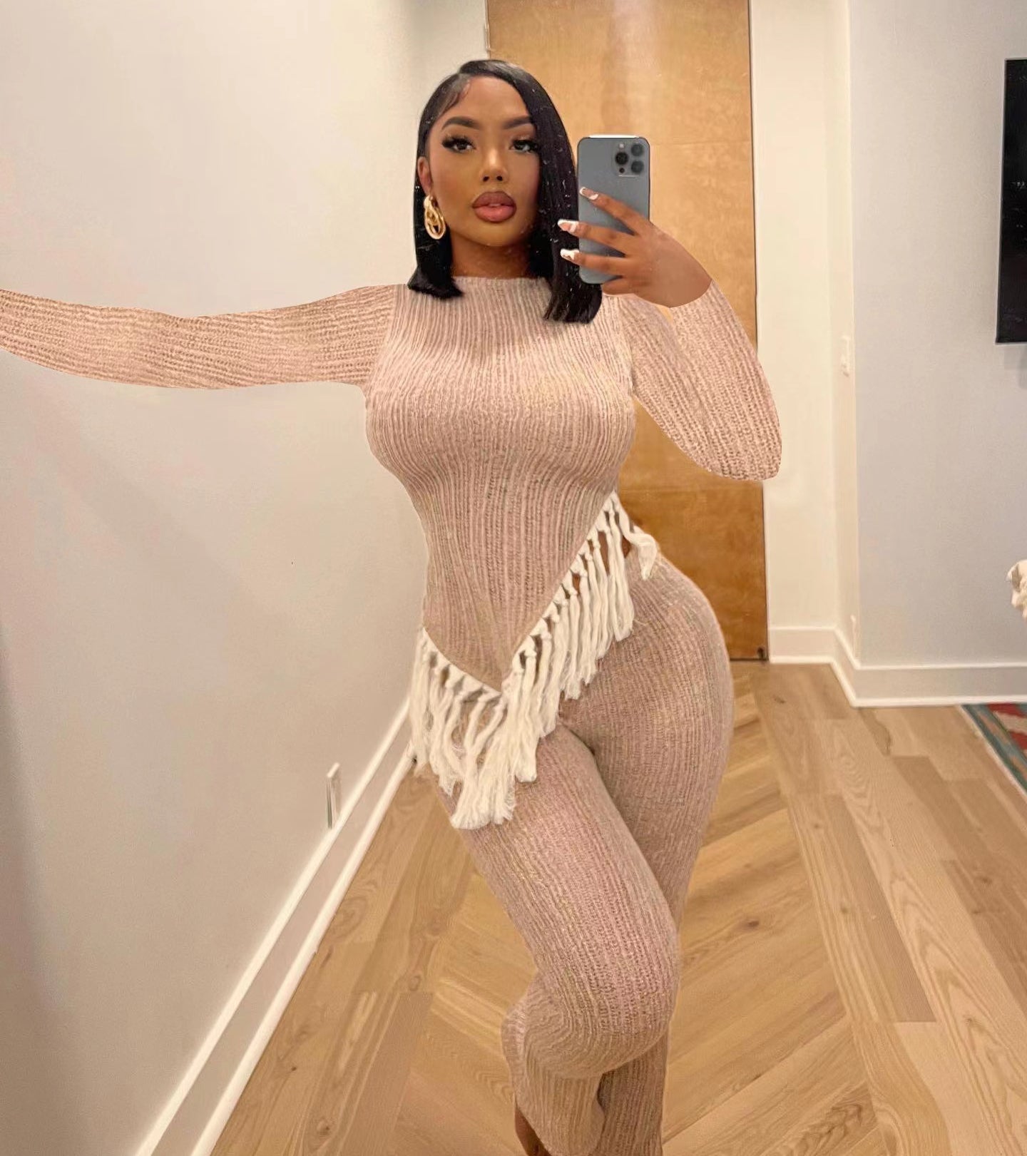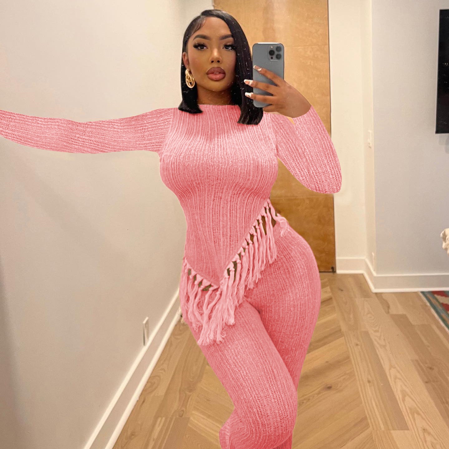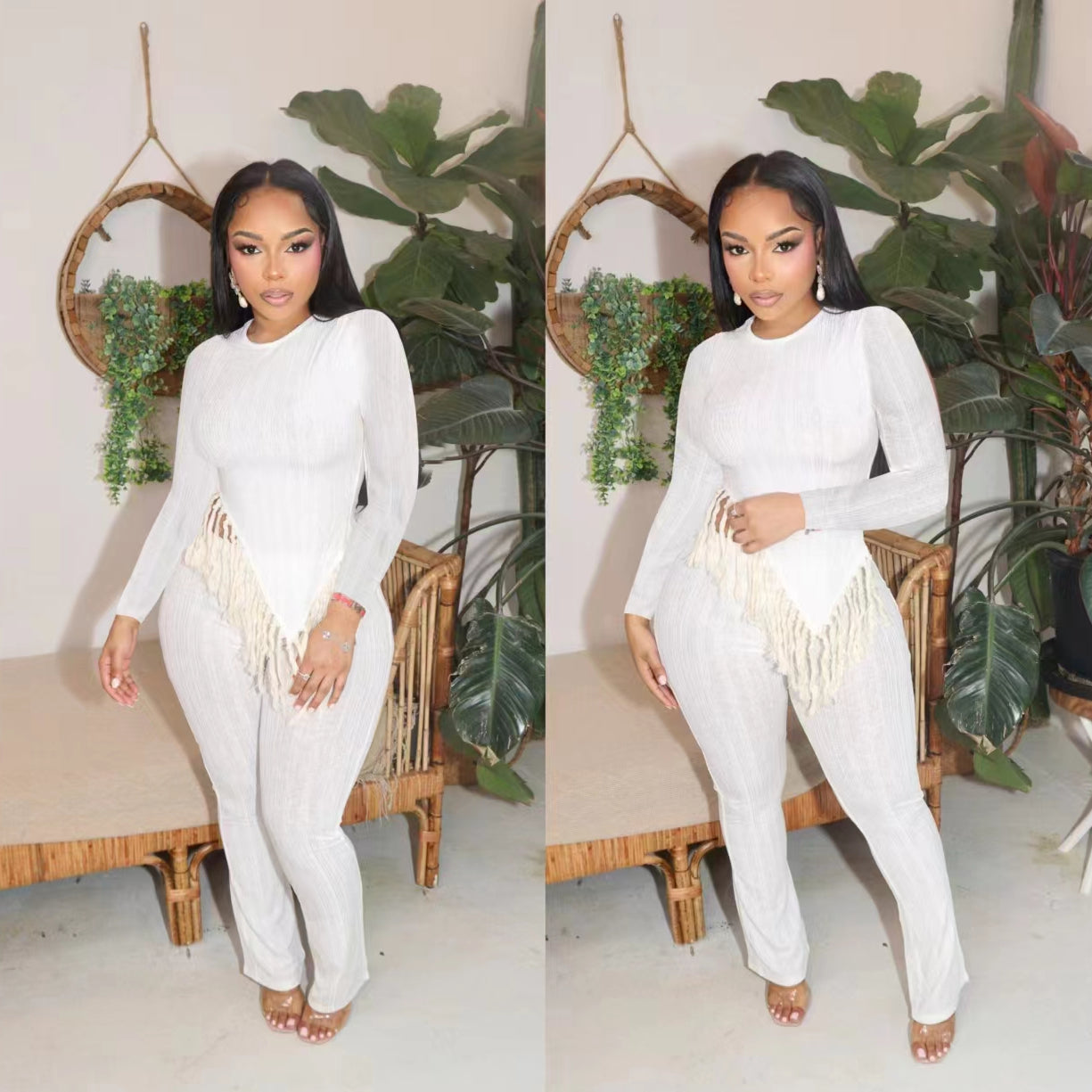 Irregular hem, tassels, long sleeves, long pants, two-piece(CL11985)