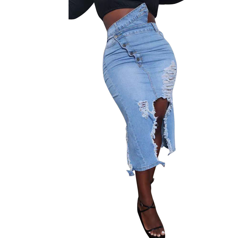 Irregular Slit Half-Length Ripped Denim Skirt (CL11556)