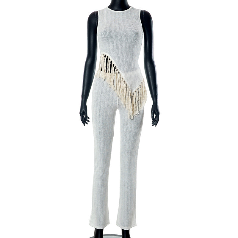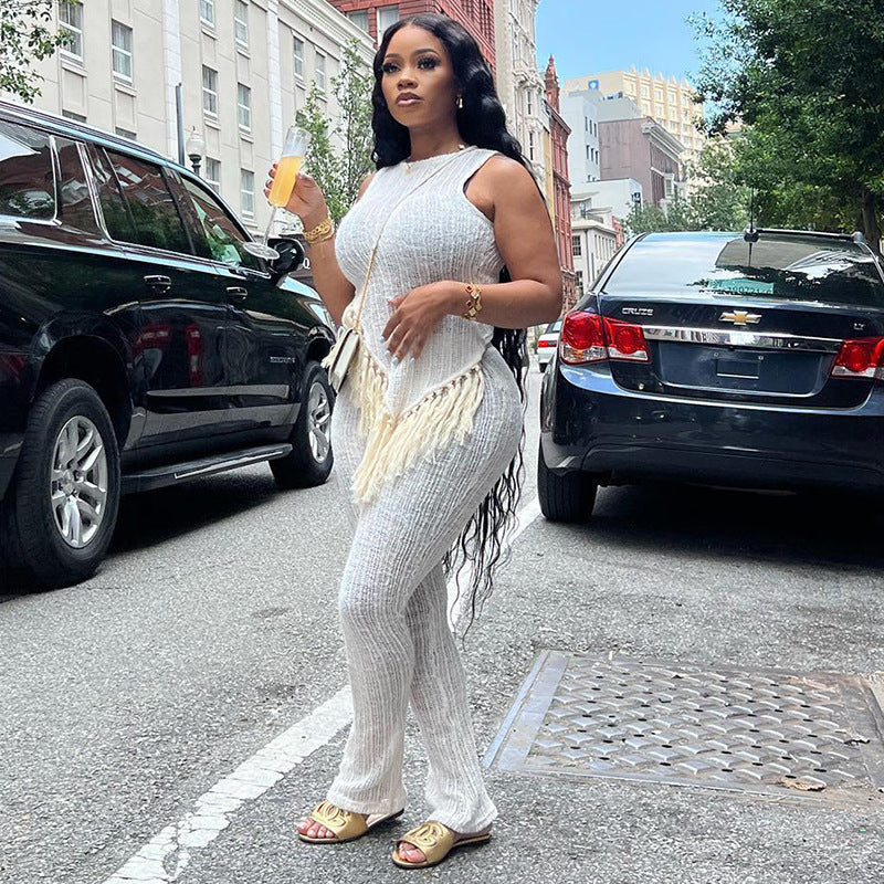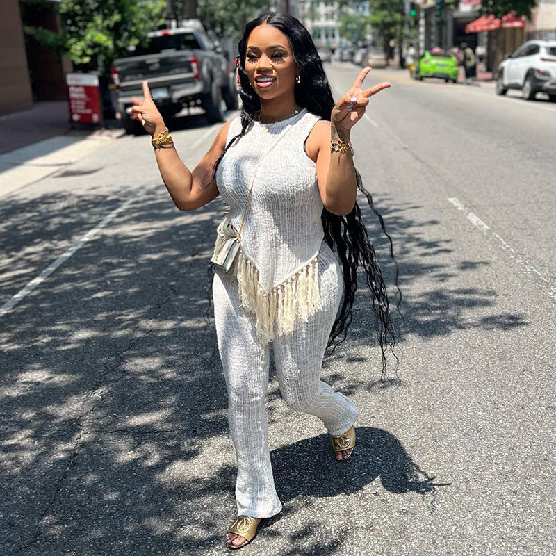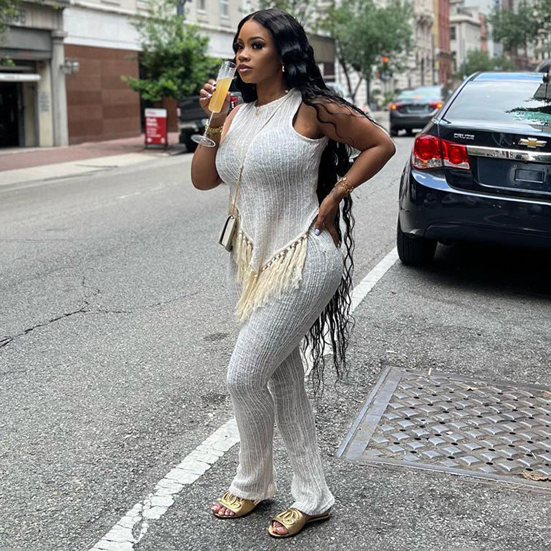 Irregular Tassel Sleeveless Casual Suit(CL11828)