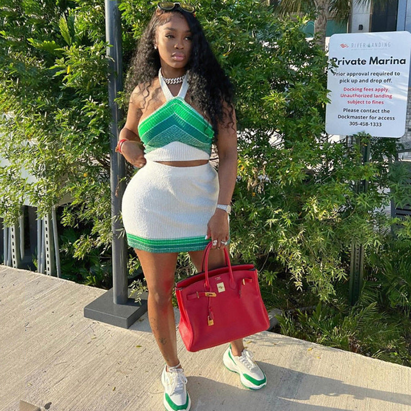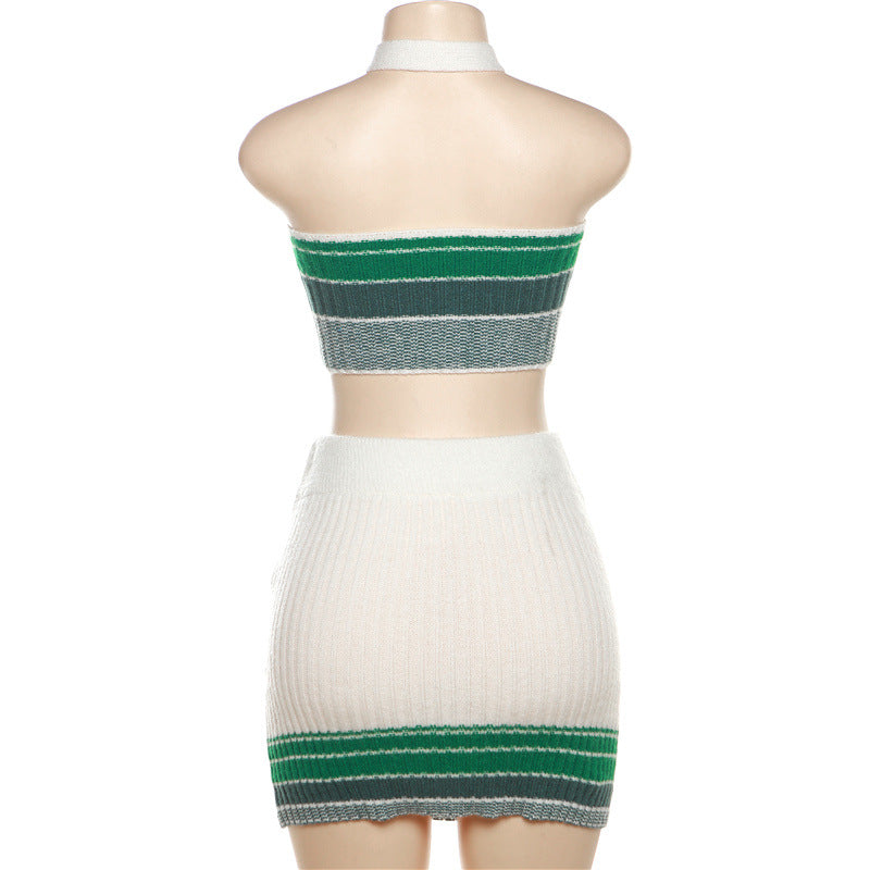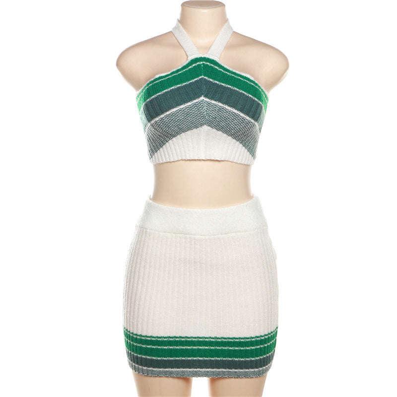 Jacquard Knitted Contrasting Neck Skirt Set (CL11846)