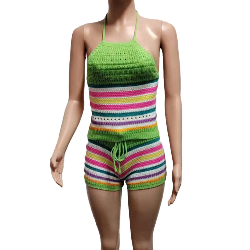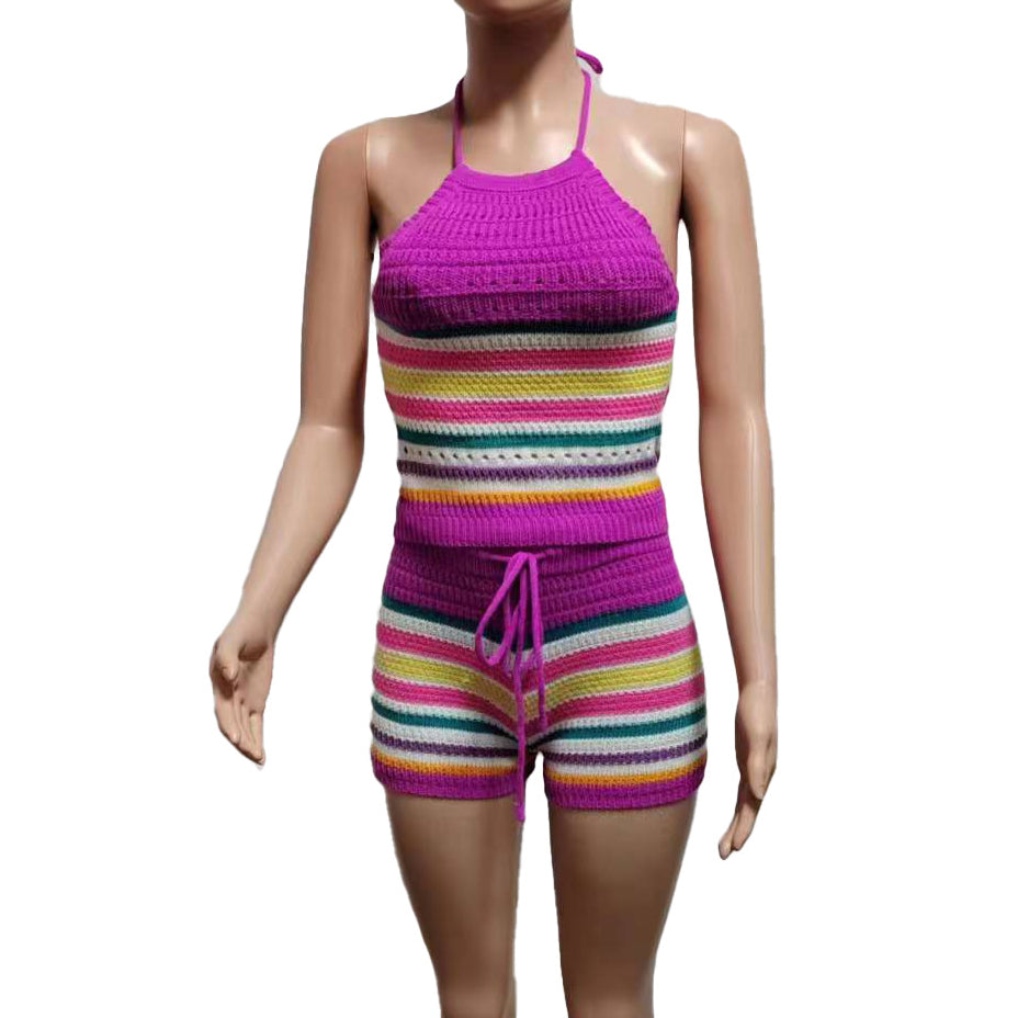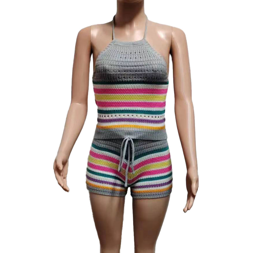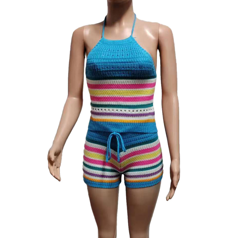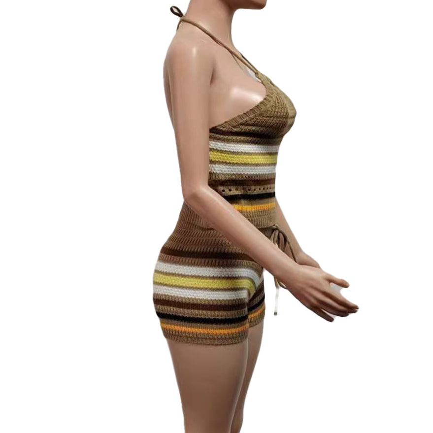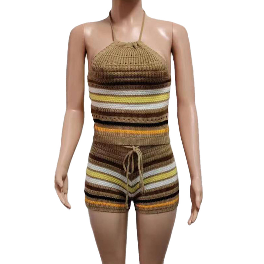 Knitted Backless Halter Top Sheath Tights Suit(CL11693)
