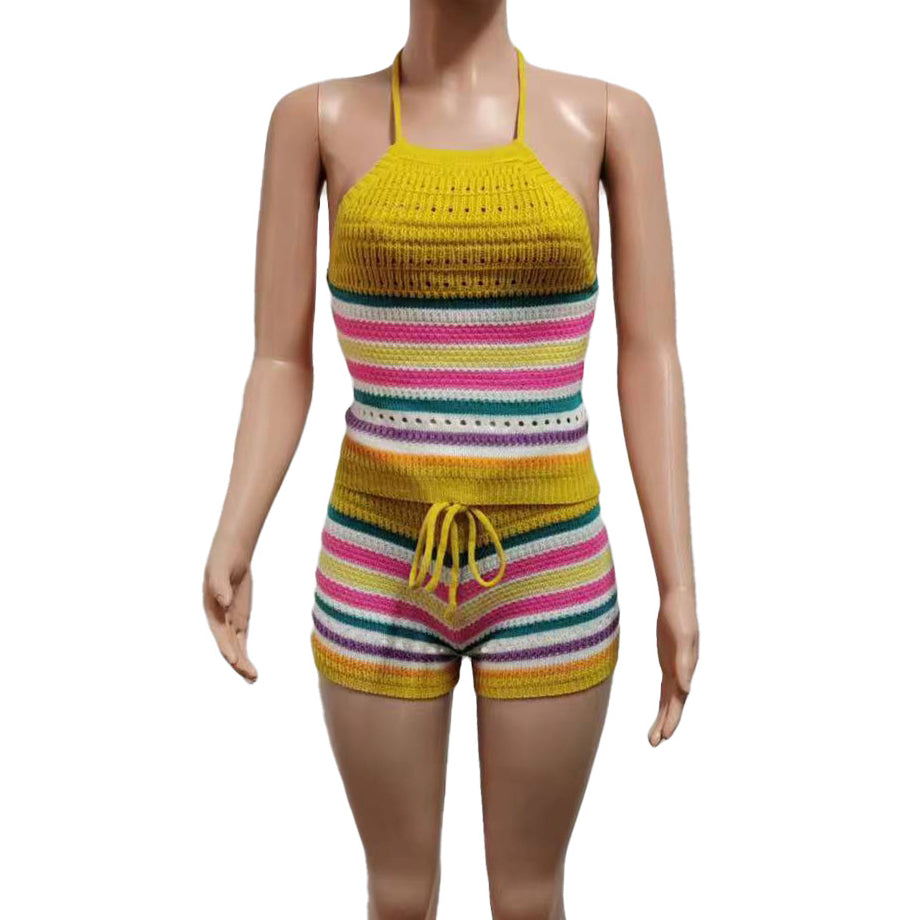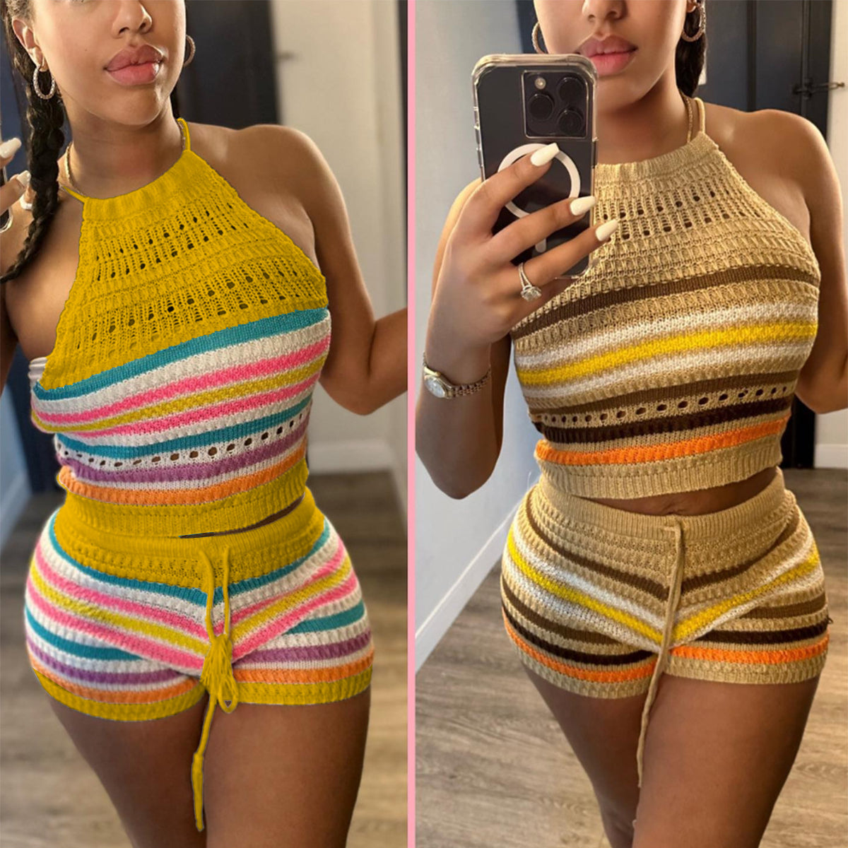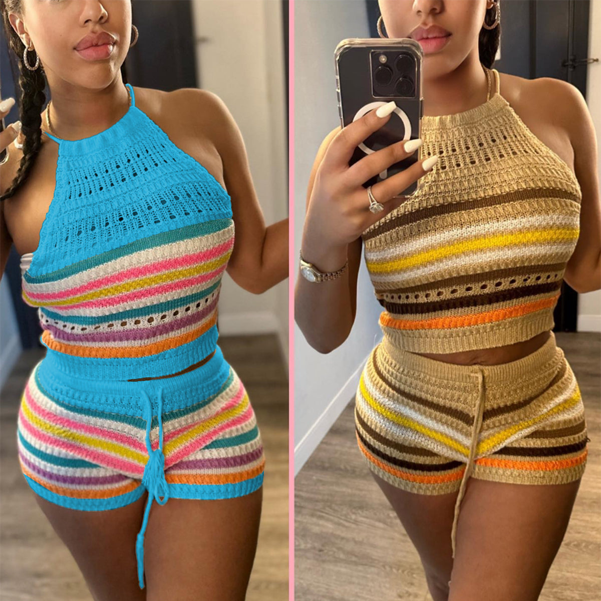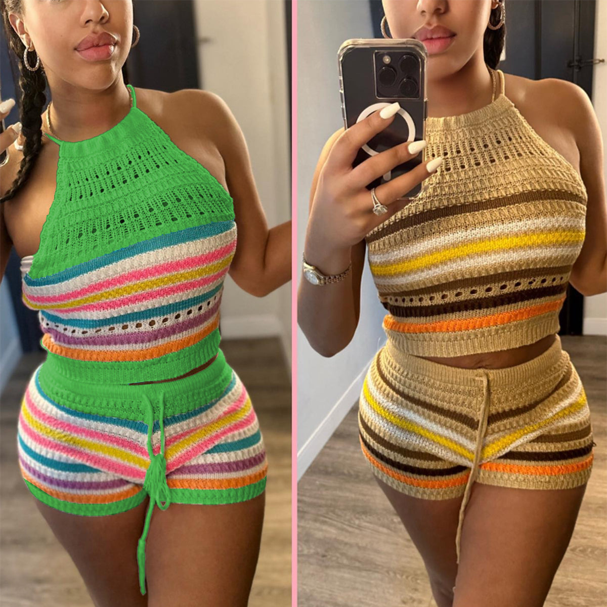 Knitted Backless Halter Top Sheath Tights Suit(CL11693)