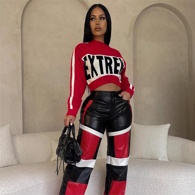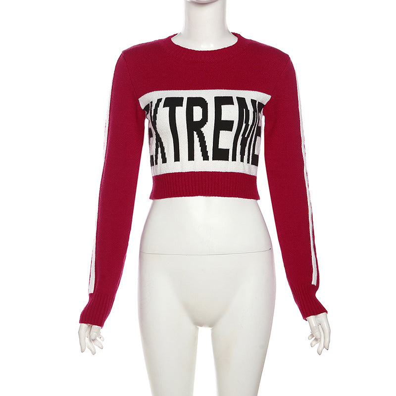 Knitted lettering long sleeve pullover slim fit crop top(CL12000)