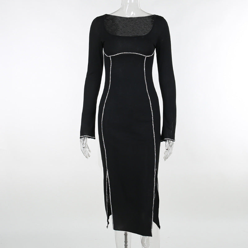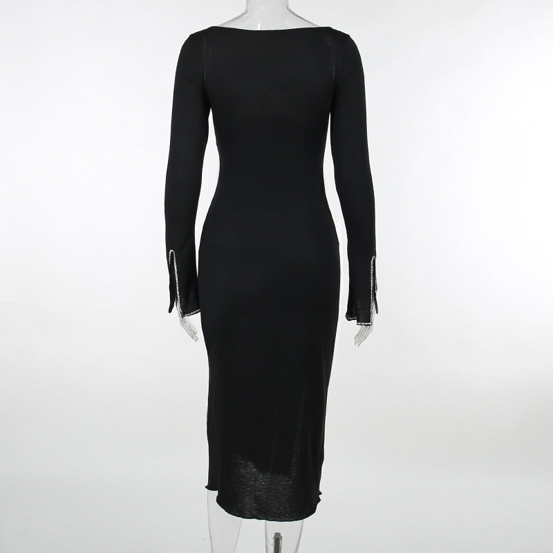 Knitted Long Sleeve Sexy Split Hot Diamond Slim Fit Dress(CL12031)