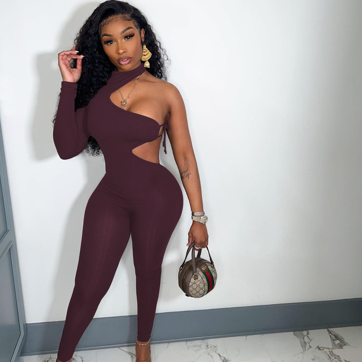 Lace-up One-Sleeve Irregular Jumpsuit(CL10848)