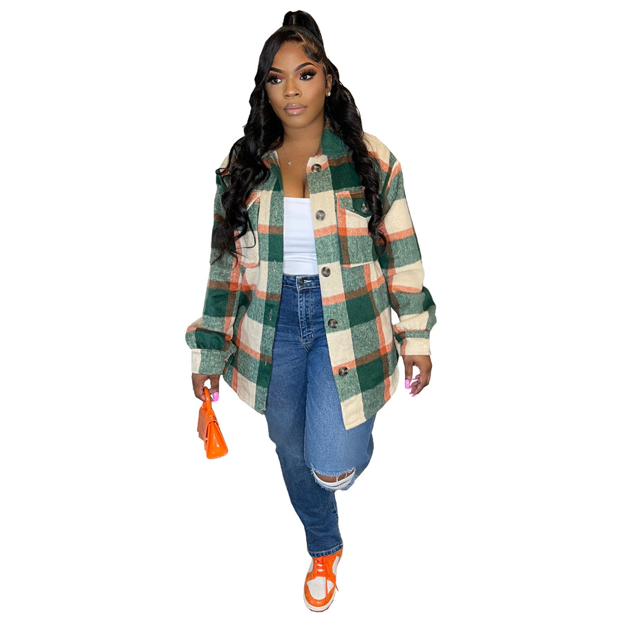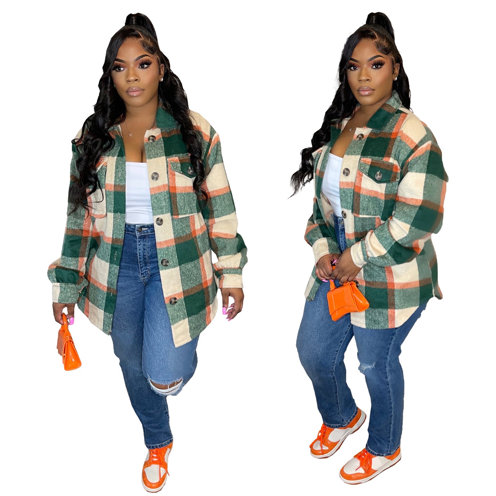 Lapel Loose Plaid Shirt Maoni Coat(CL12021)