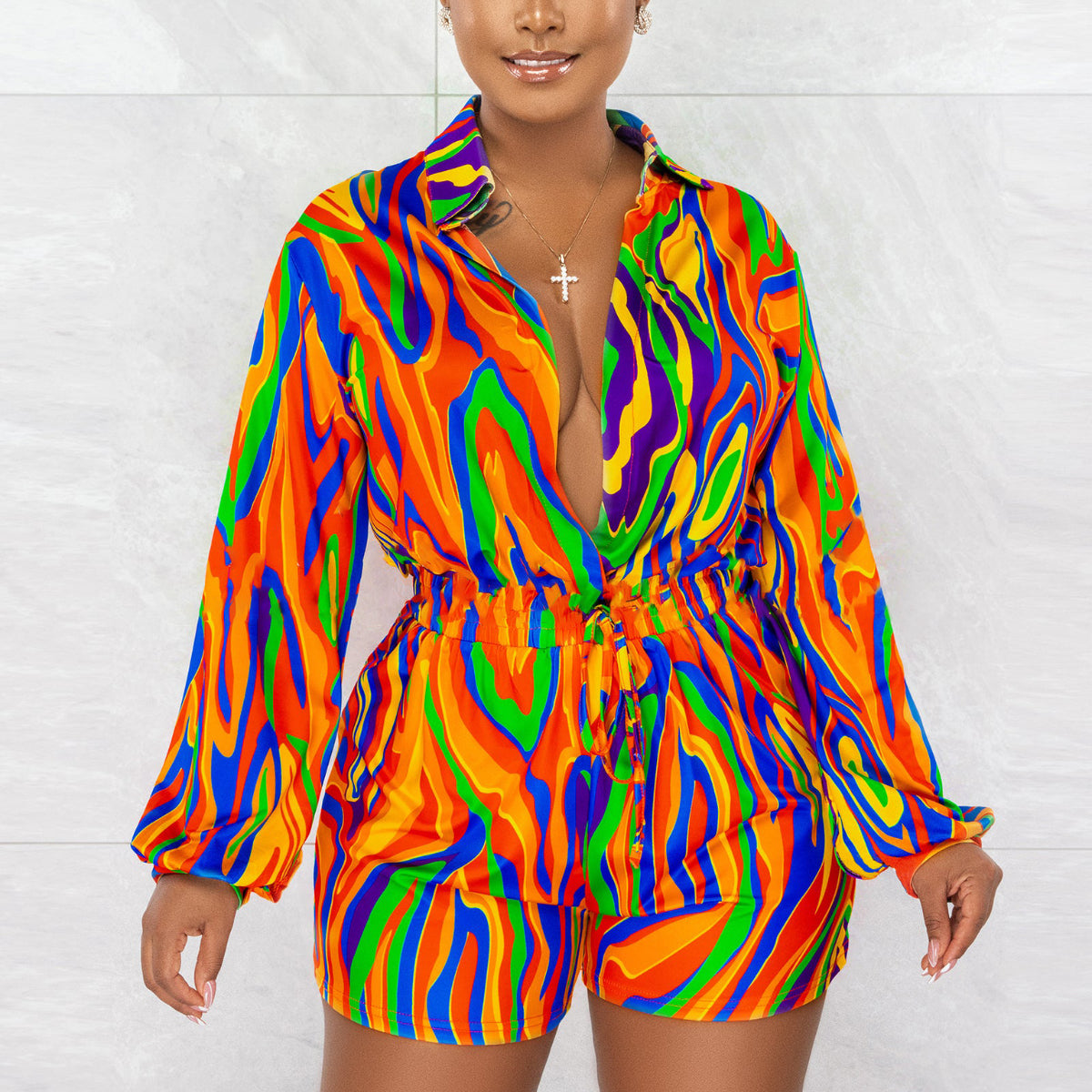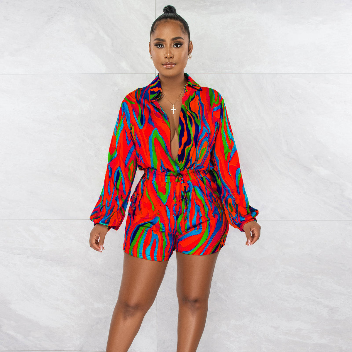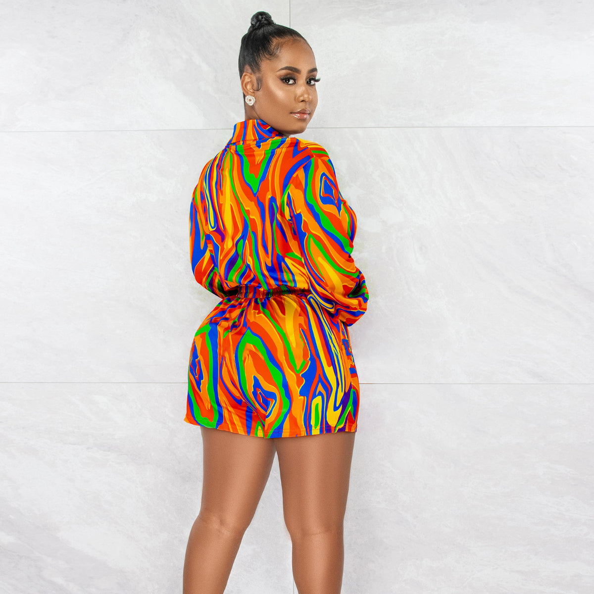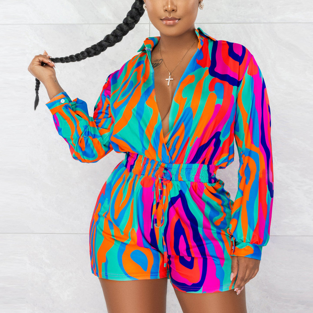 Lapel Print Fitted Waist Jumpsuit(CL10827)