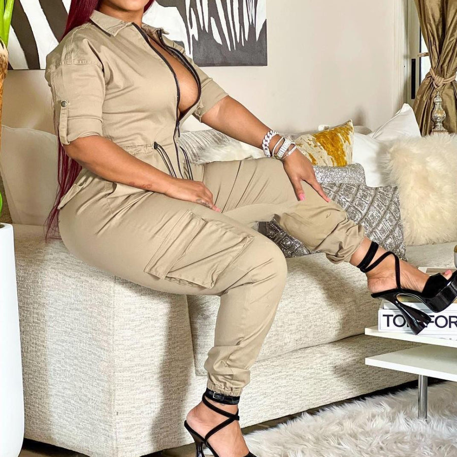 Lapel zipper drawstring overalls (CL10927)