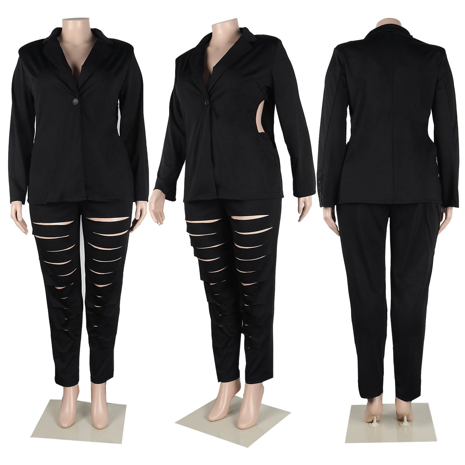 Large Size Slim-Fit Hollow-out Suit Two-Piece Suit(CL10850)