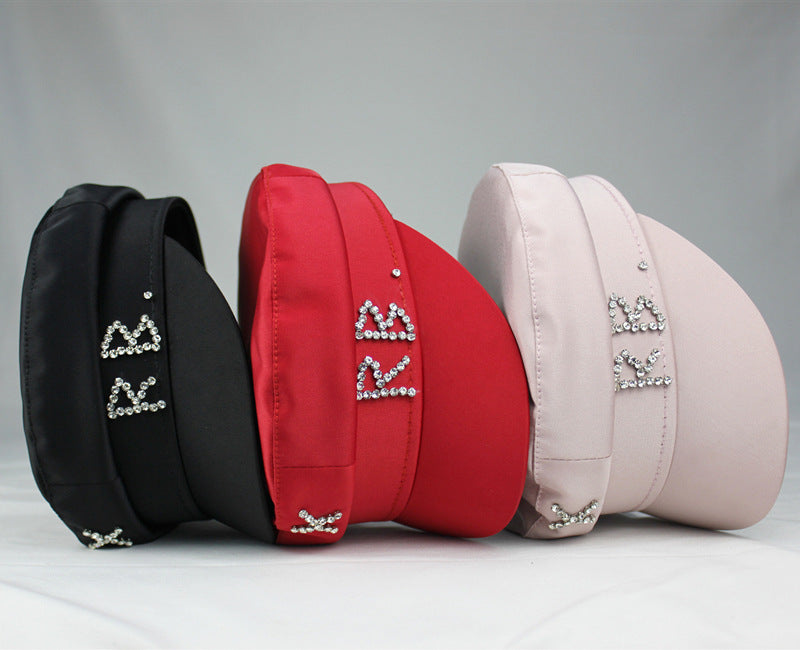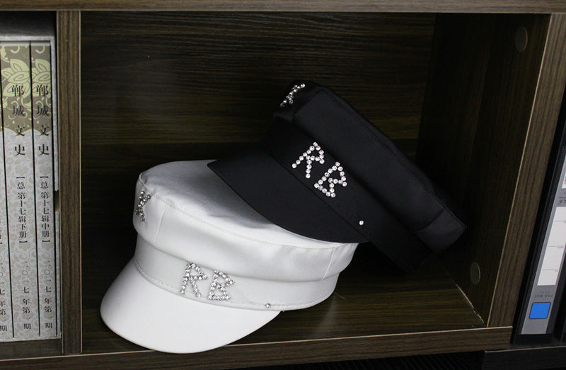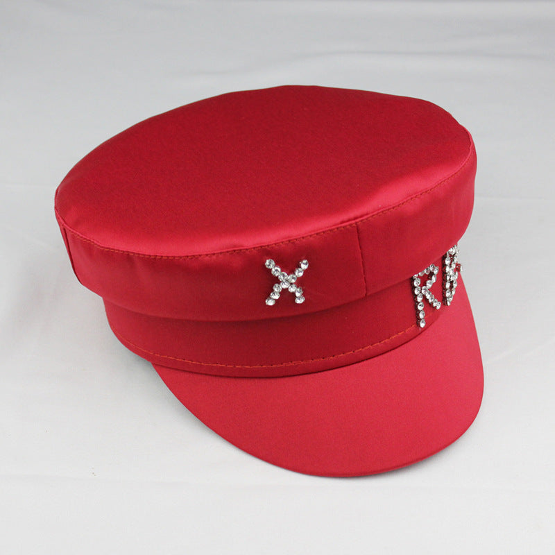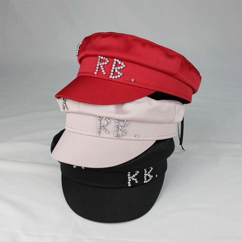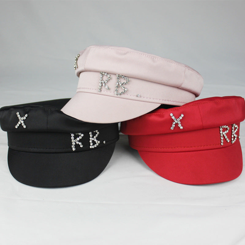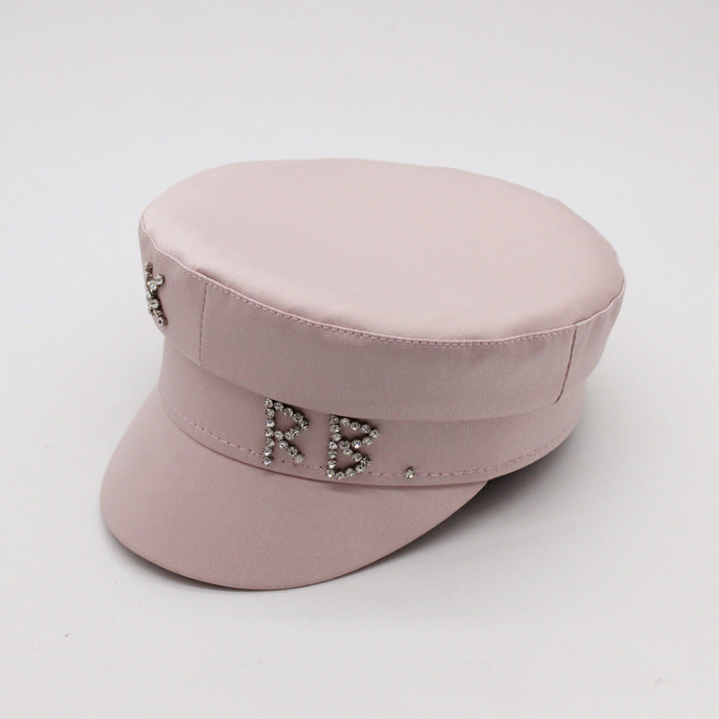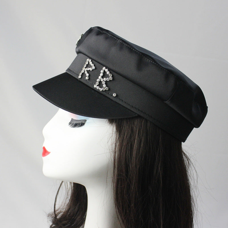 Letter Embroidered Navy Hat Satin Hat (A0177)