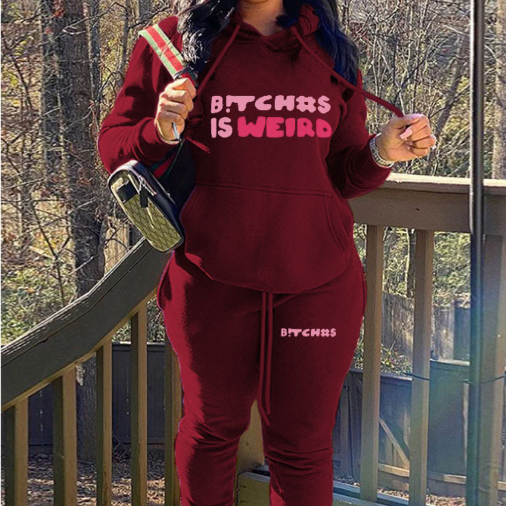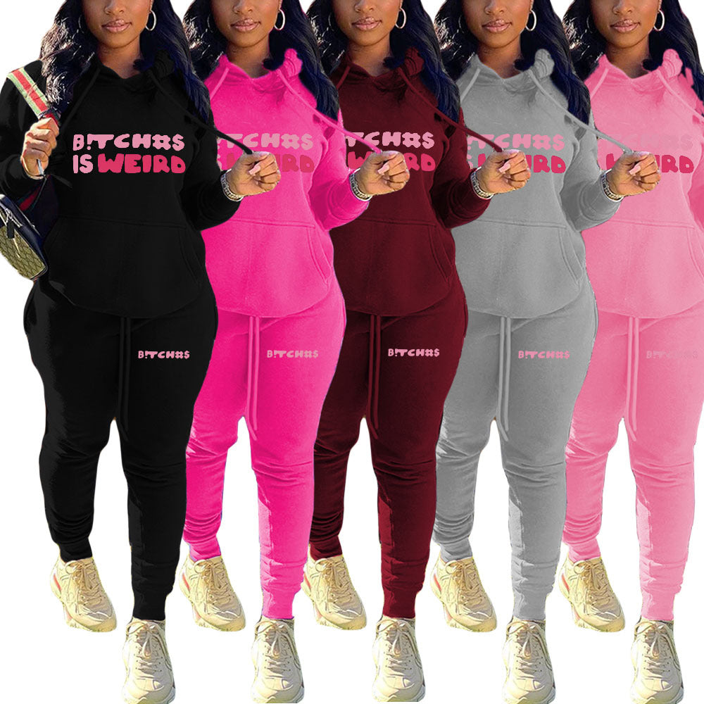 Letter Printed Hoodie Two-Piece Set(CL10895)