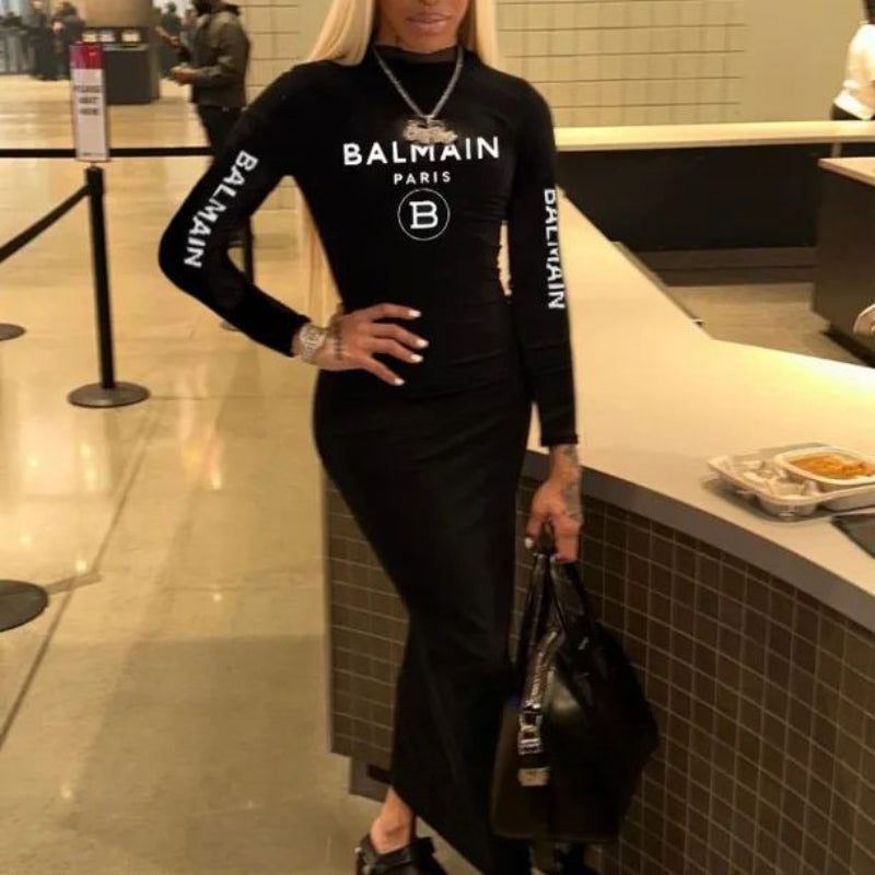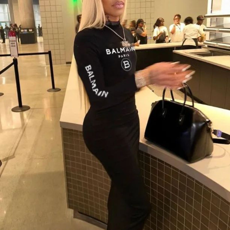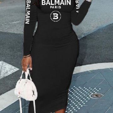 Letter printed long sleeved slim fitting dress(CL12040)