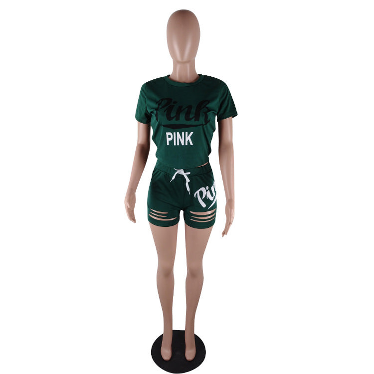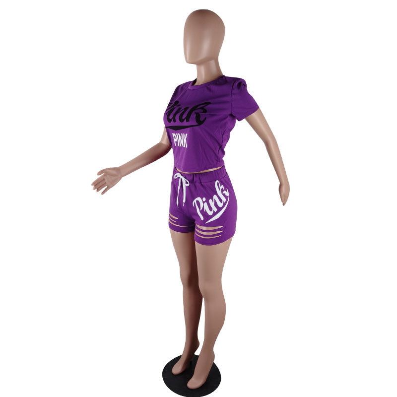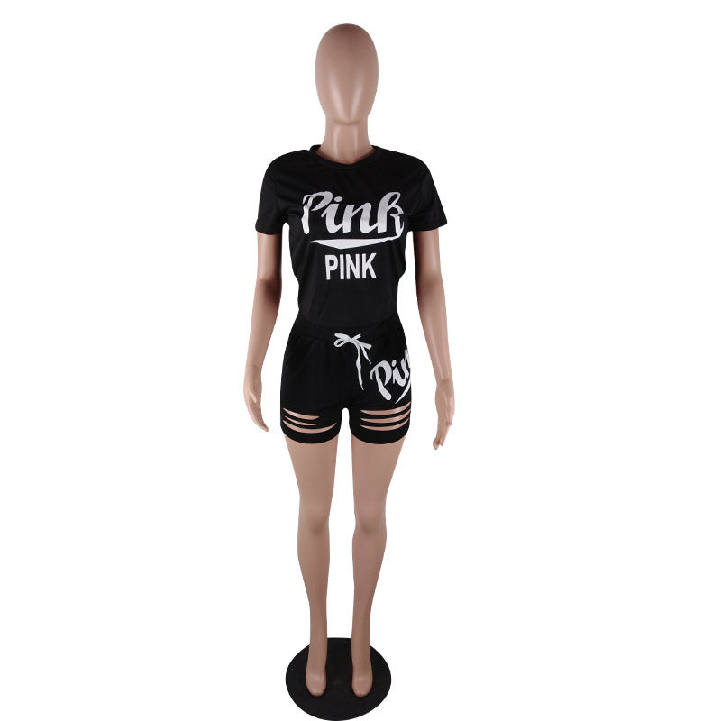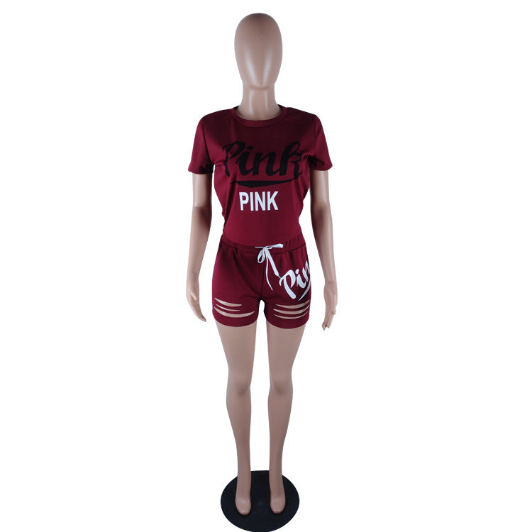 Letter Printed Pink Hole 2PC Set (CL11308)