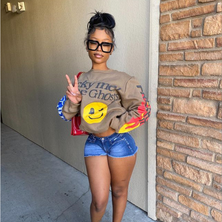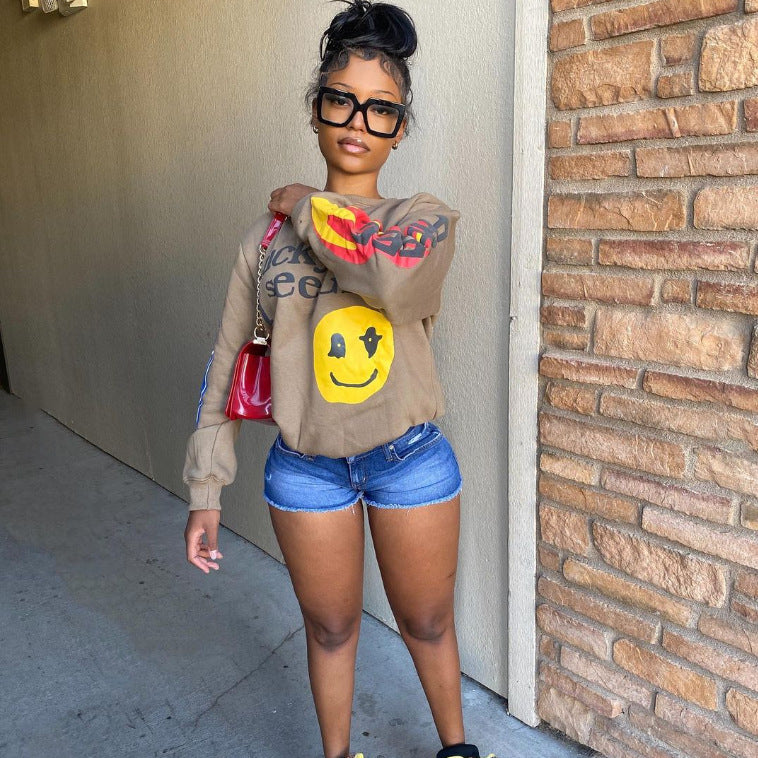 Letter Smiley Face Plush Hoodie (CL11100)
