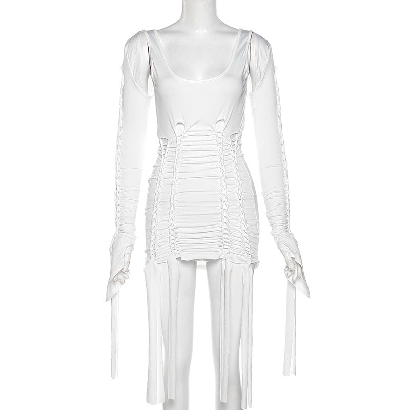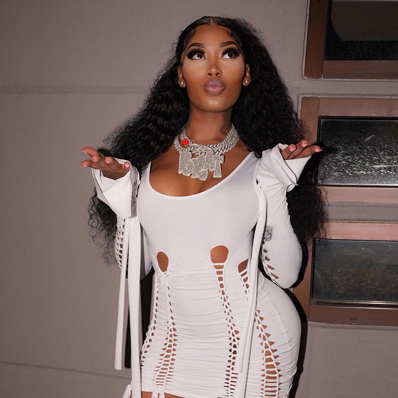 Long Sleeve Shawl Ripped Slim Fit Hip Skirt Two-piece Set (CL11809)