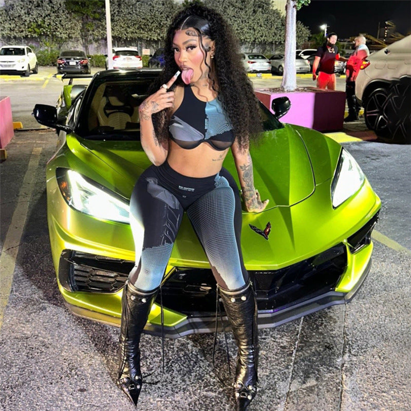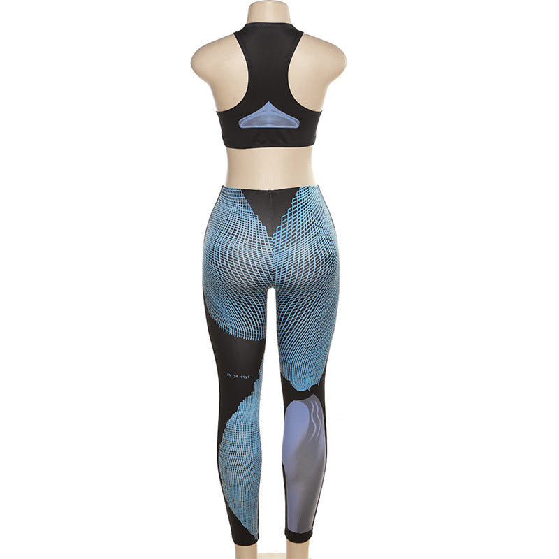 Low Neck Digital Printed Sleeveless Vest Slimming Set (CL11757)