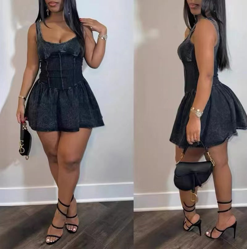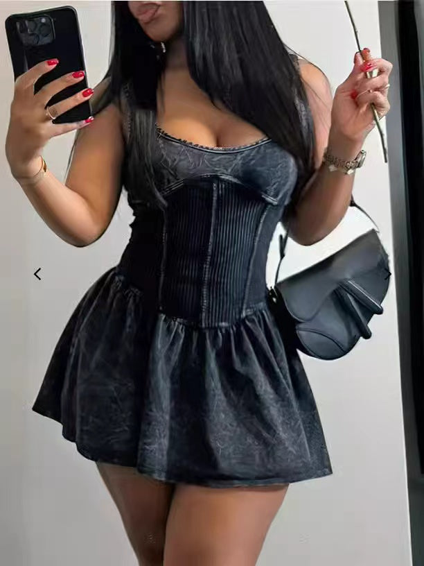 Make old sling splicing fluffy dress(CL12201)