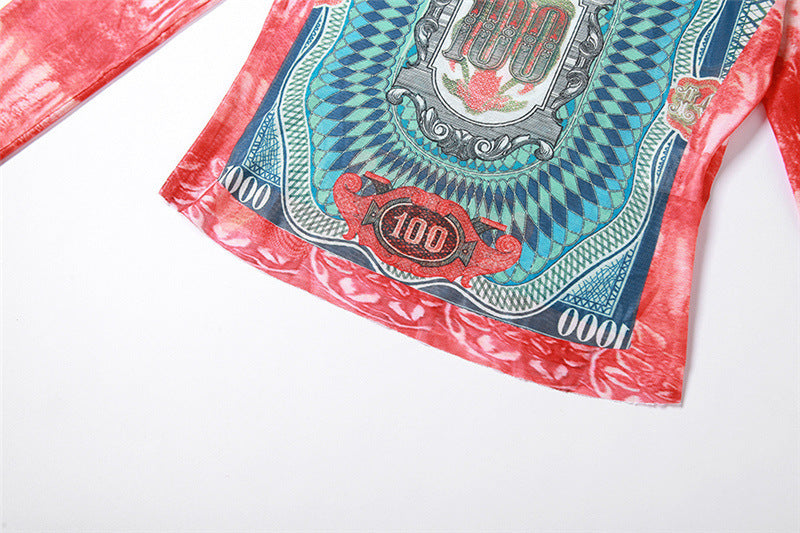 Mesh Printed Bottom Round Neck Long-sleeved Shirt (CL11280)