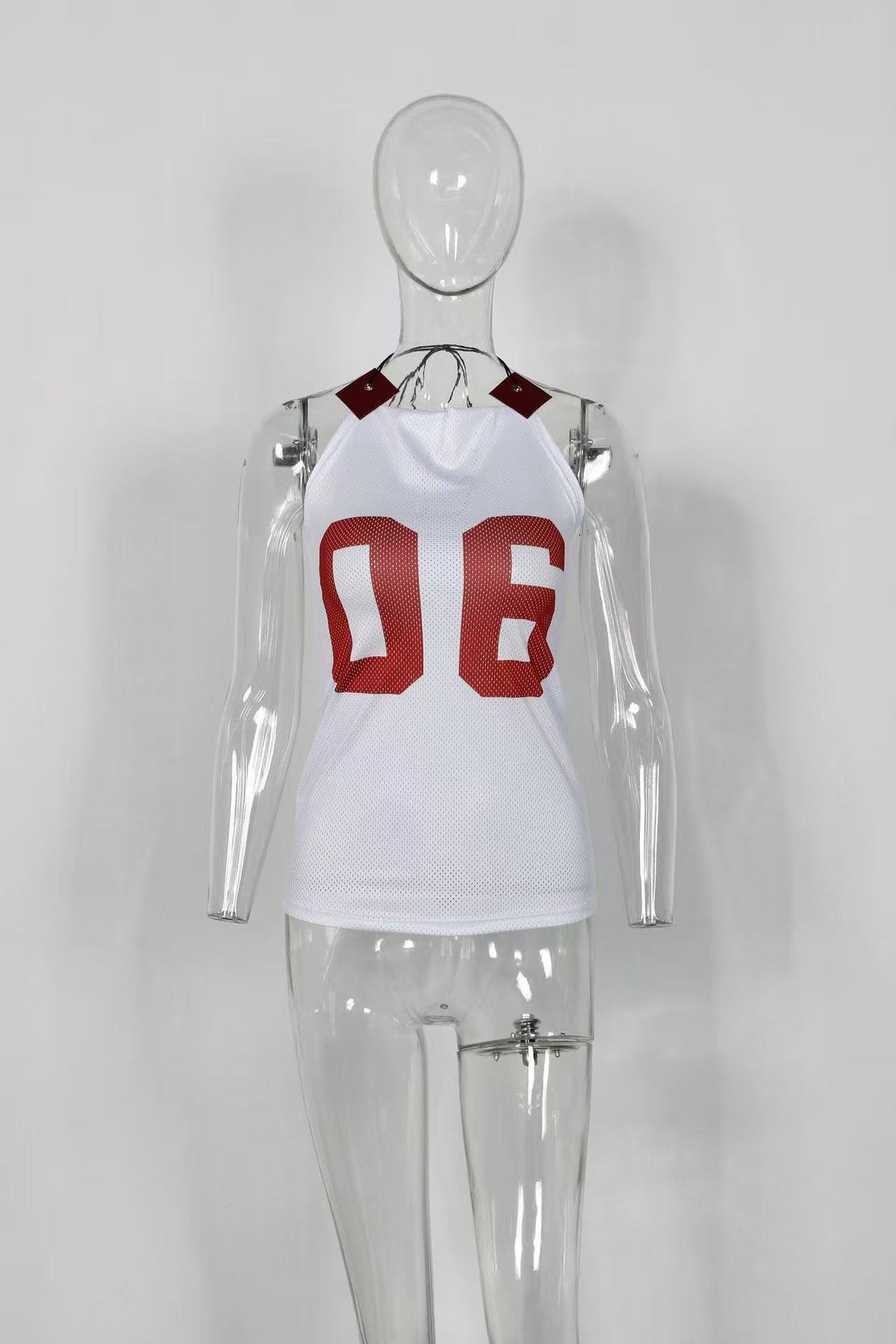 Mesh printed suspender leather tube top backless dress(CL12352)