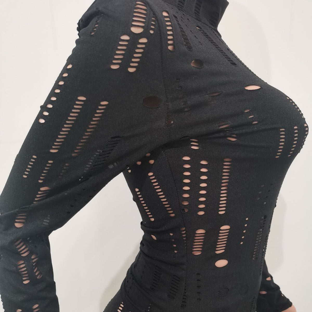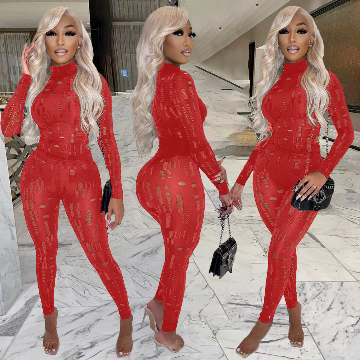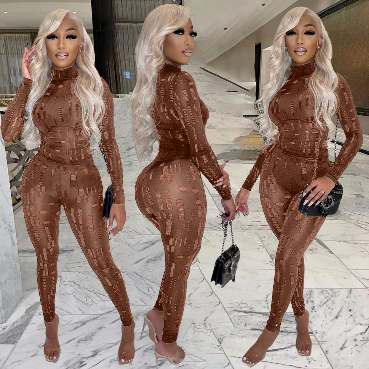 Middle Collar Knitted Ripped Two-Piece Set (Cl10484)