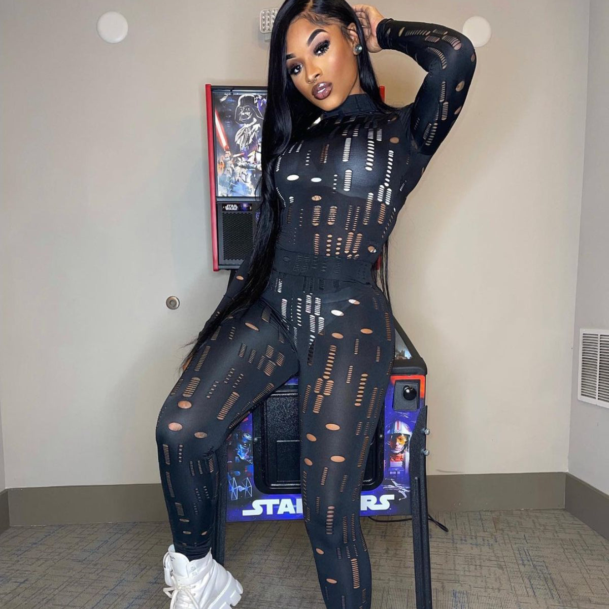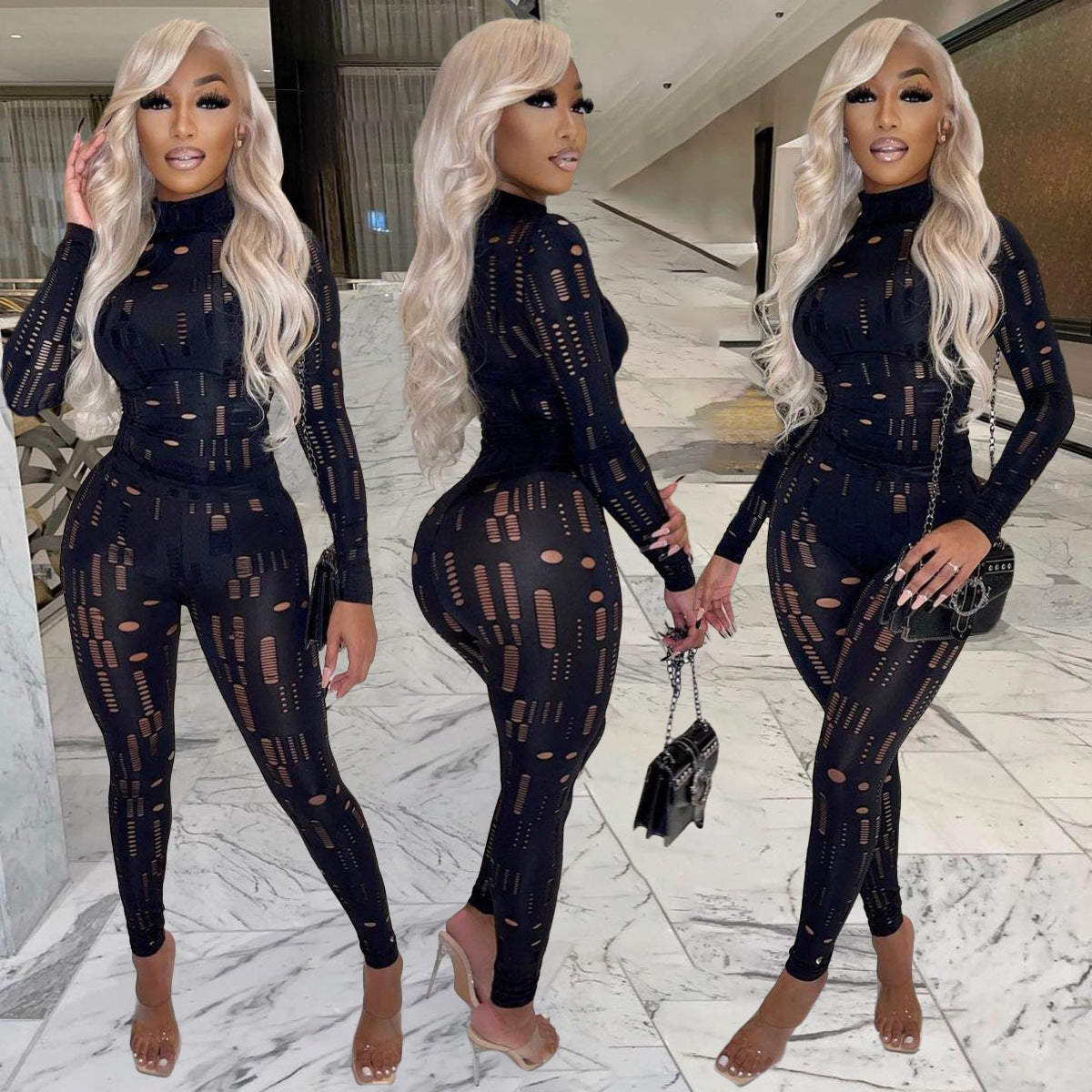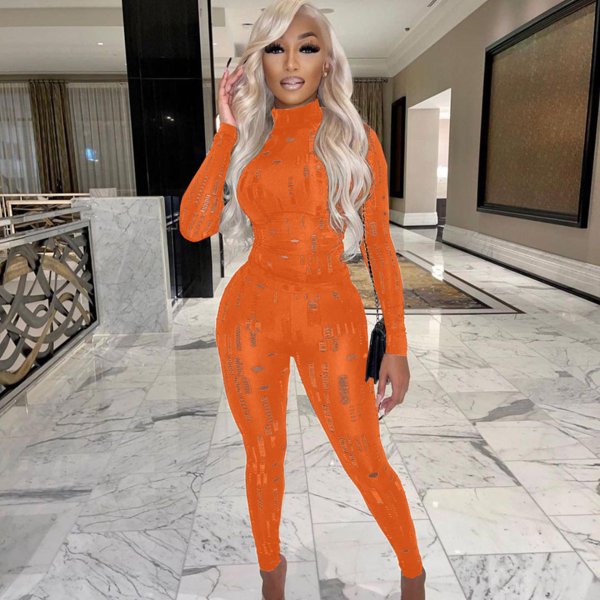Middle Collar Knitted Ripped Two-Piece Set (Cl10484)